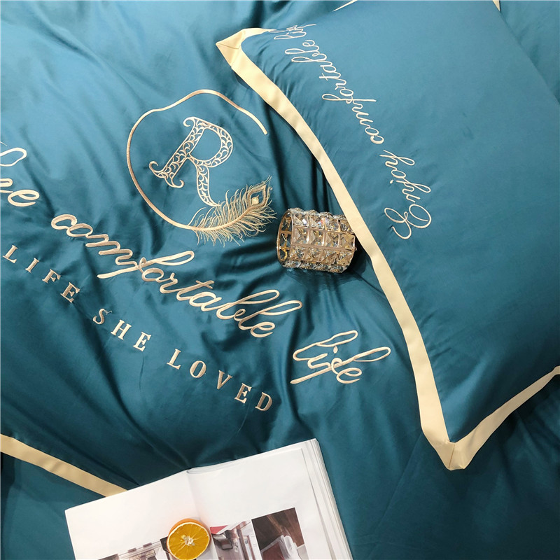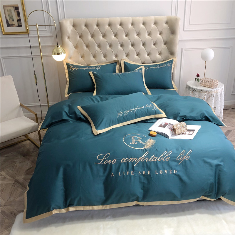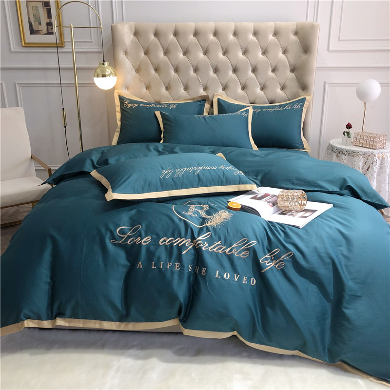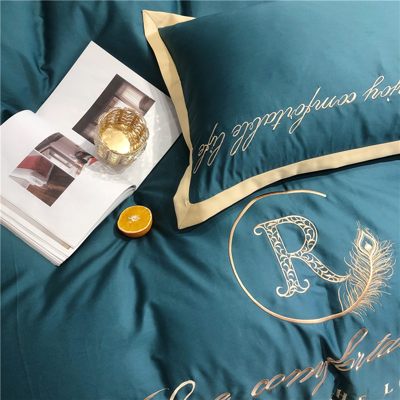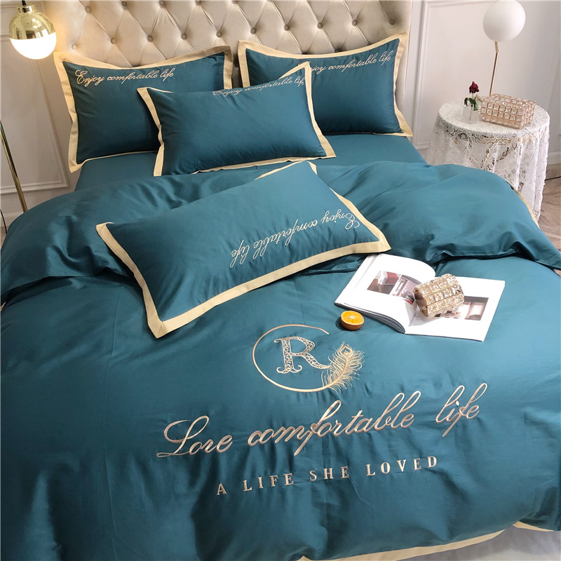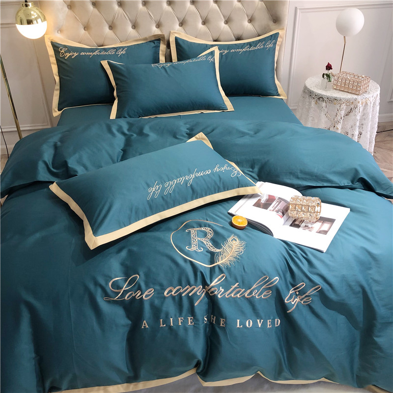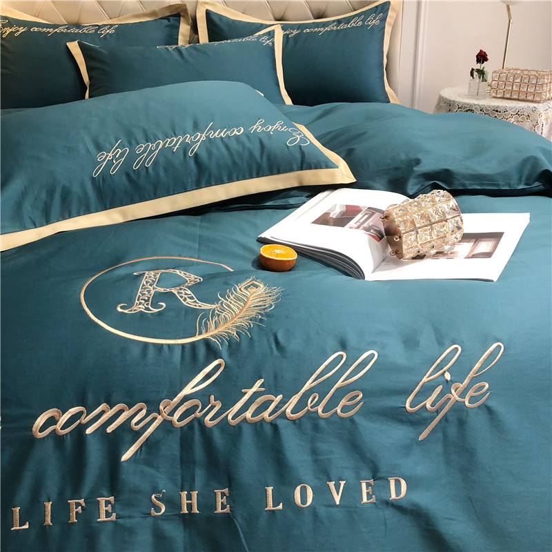 馨蕊家居 2021新款60长绒棉绣花四件套 简爱-云杉绿
