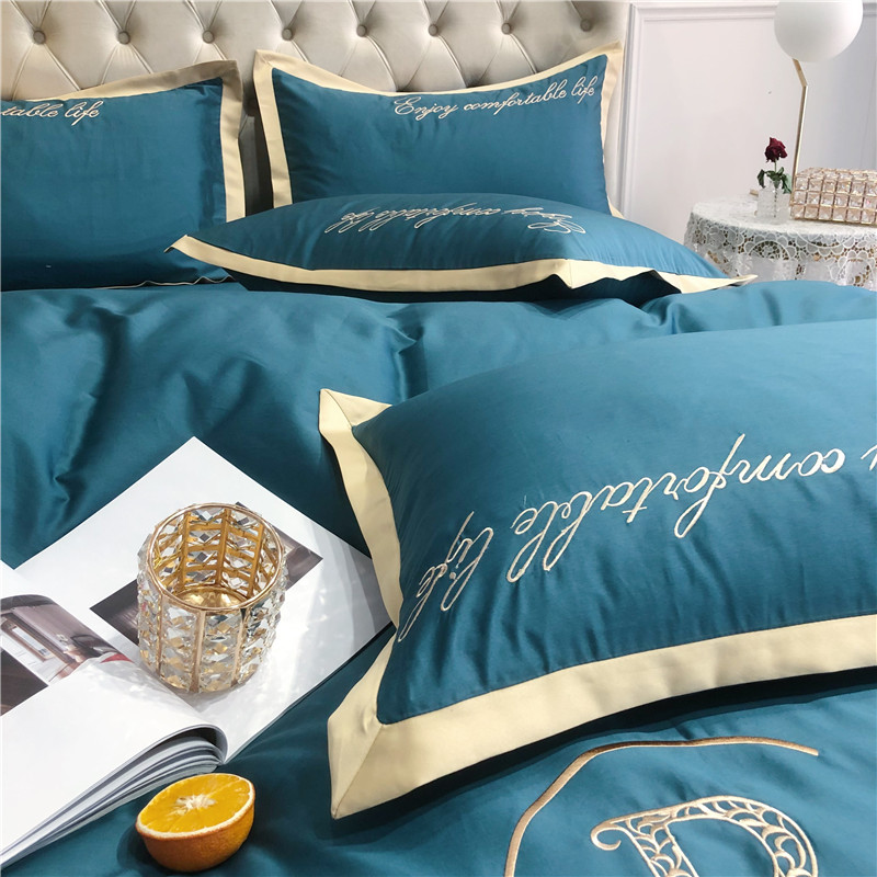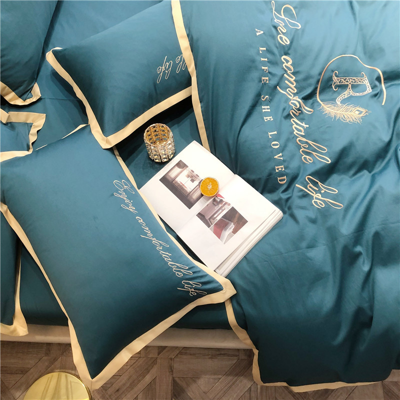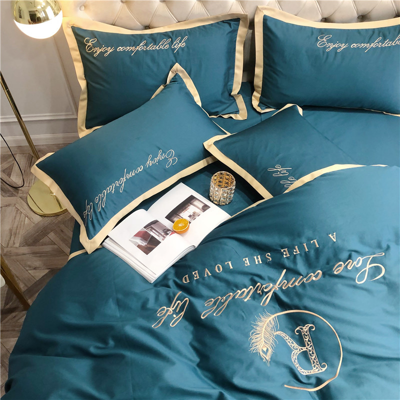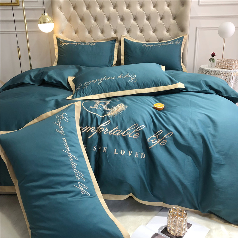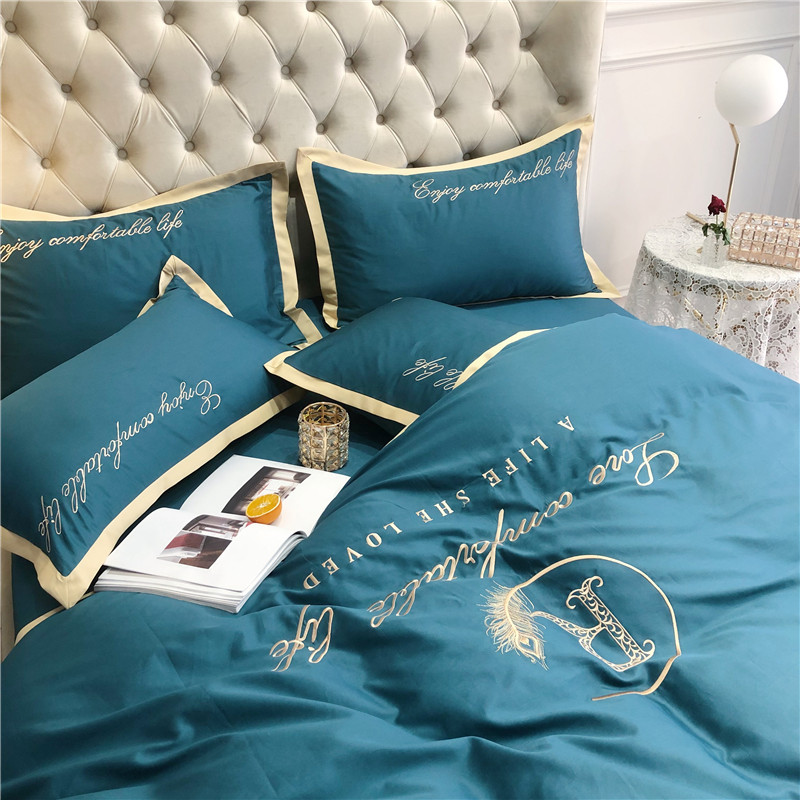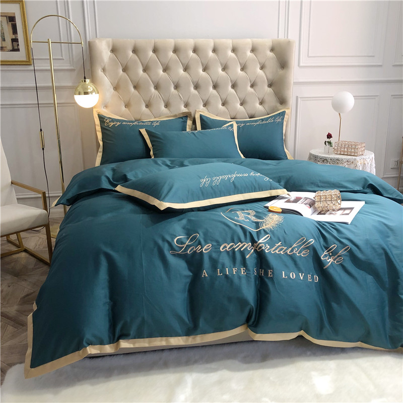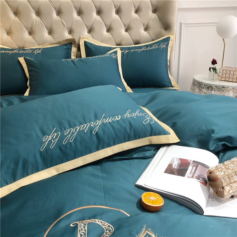 馨蕊家居 2021新款60长绒棉绣花四件套 简爱-云杉绿