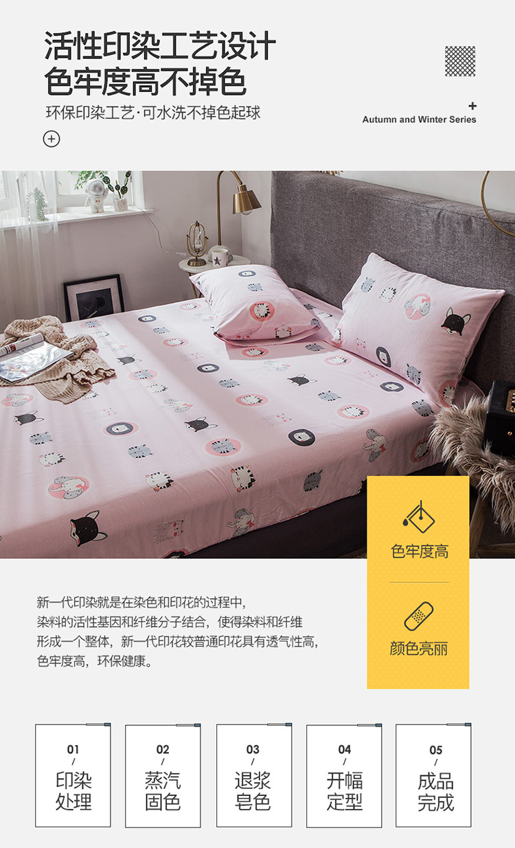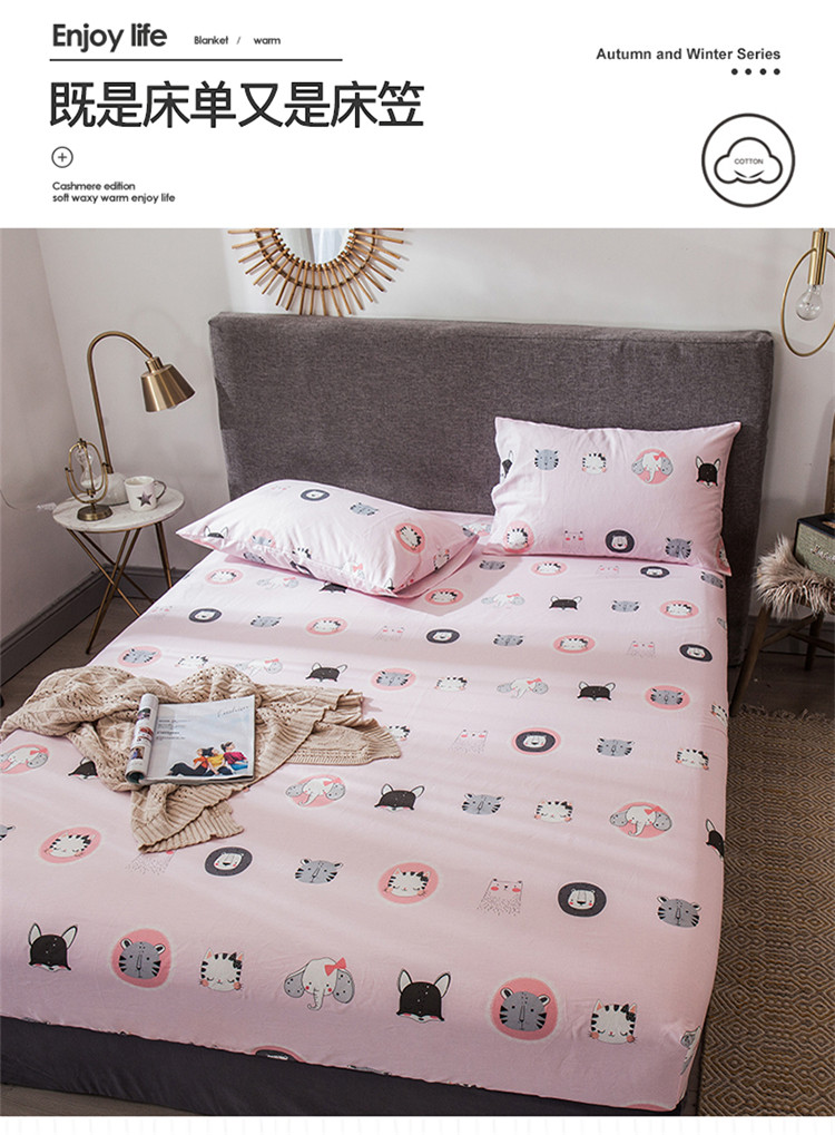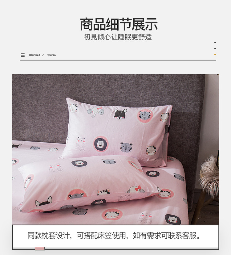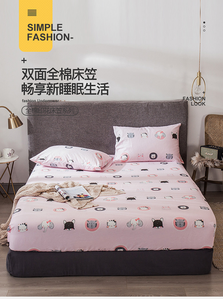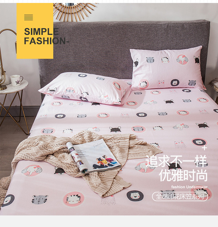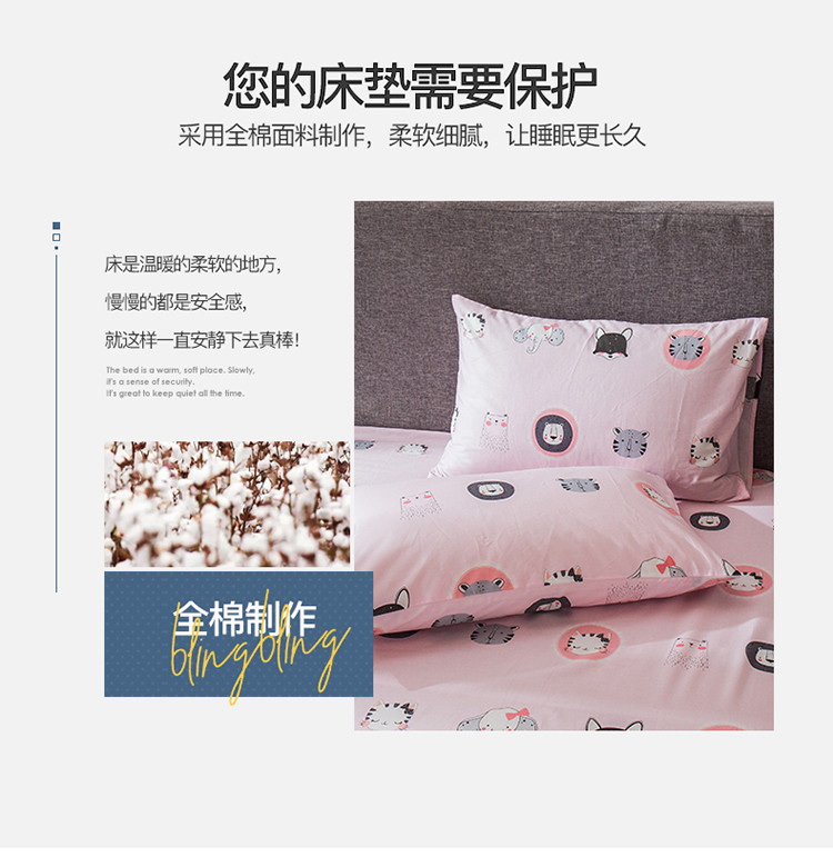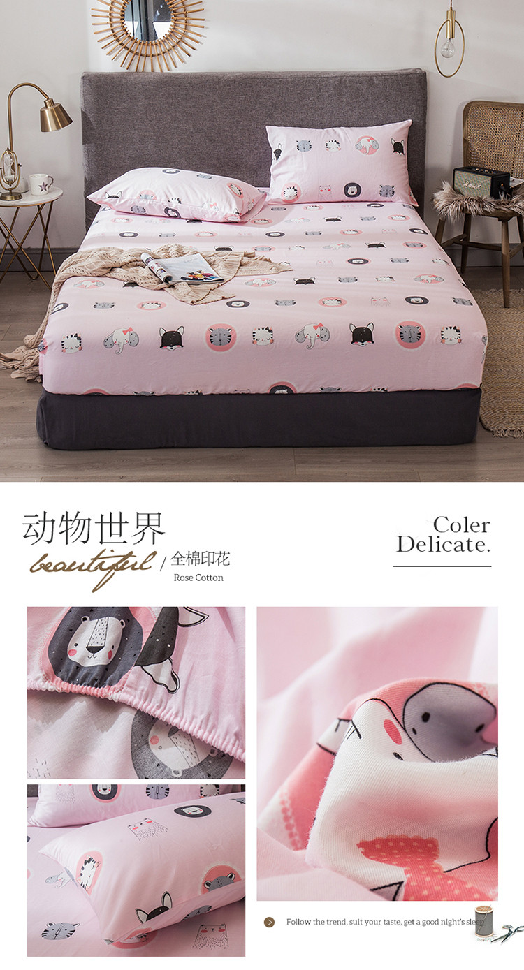 商品名称:宝齐莱家纺 2019全棉小清新印花单床笠 动物世界