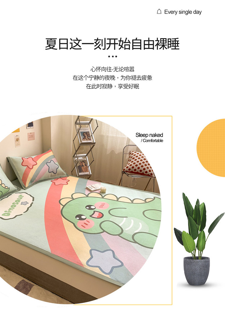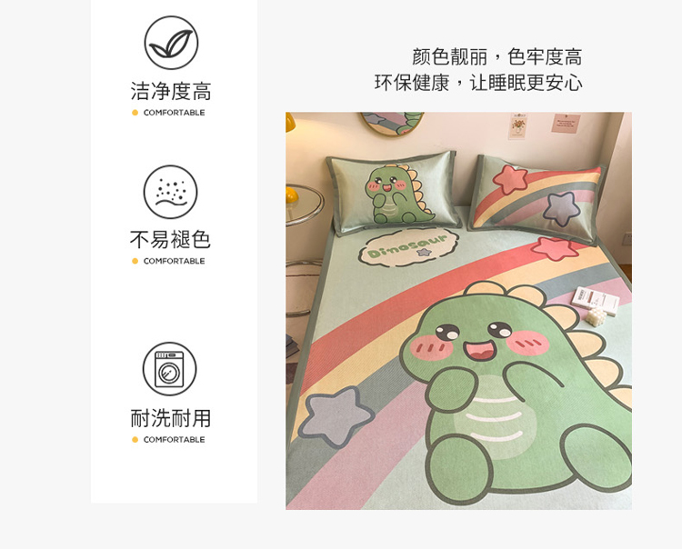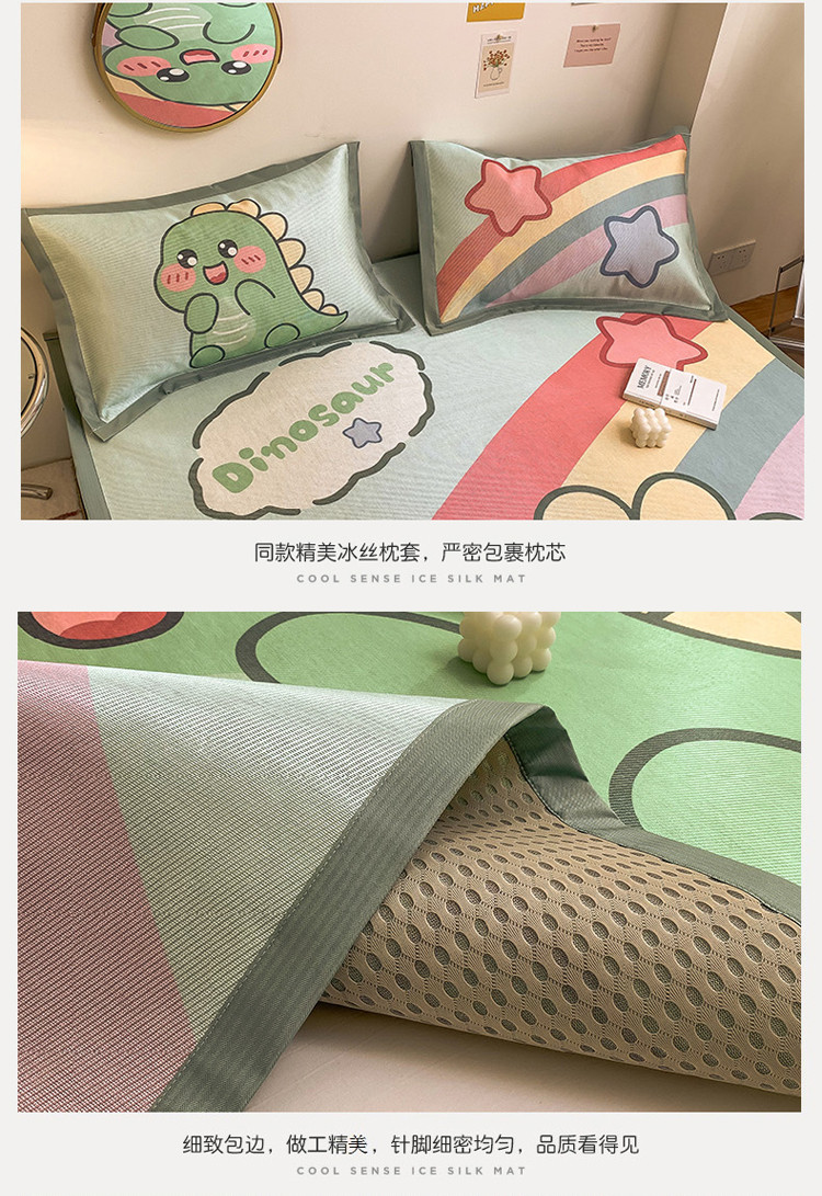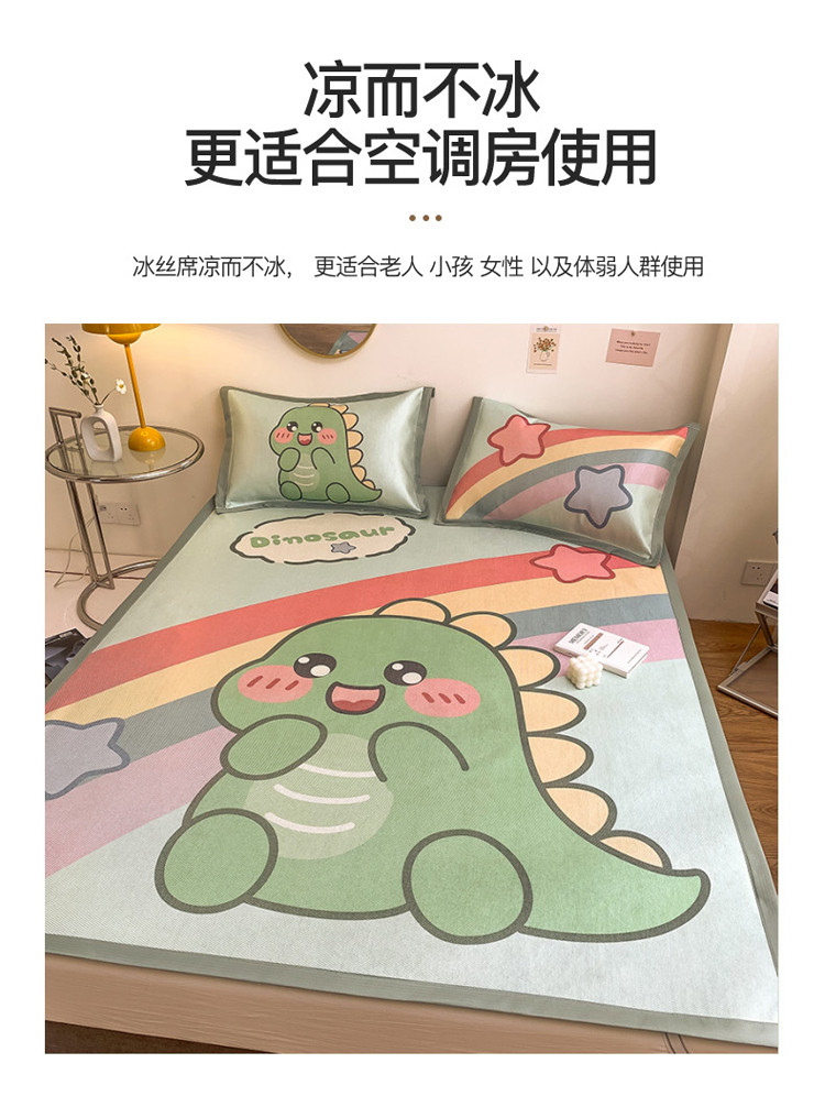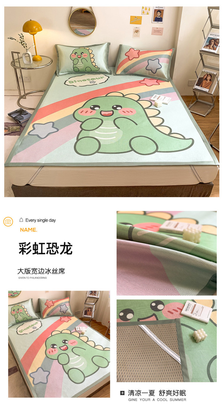 商品名称:慕尚家纺2022新款全面升级宽边大版数码冰丝席凉席 彩虹恐龙