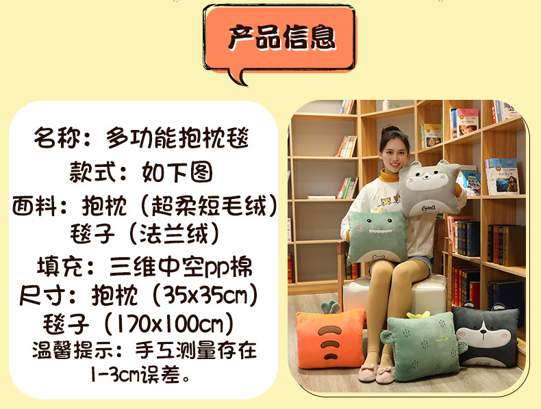 当前位置: 91家纺网 > 商品网购 > 居家日用 > 靠垫/抱枕 > 仟亿莱2020新款三用水果抱枕毯 三用浅灰猫咪