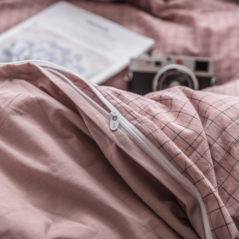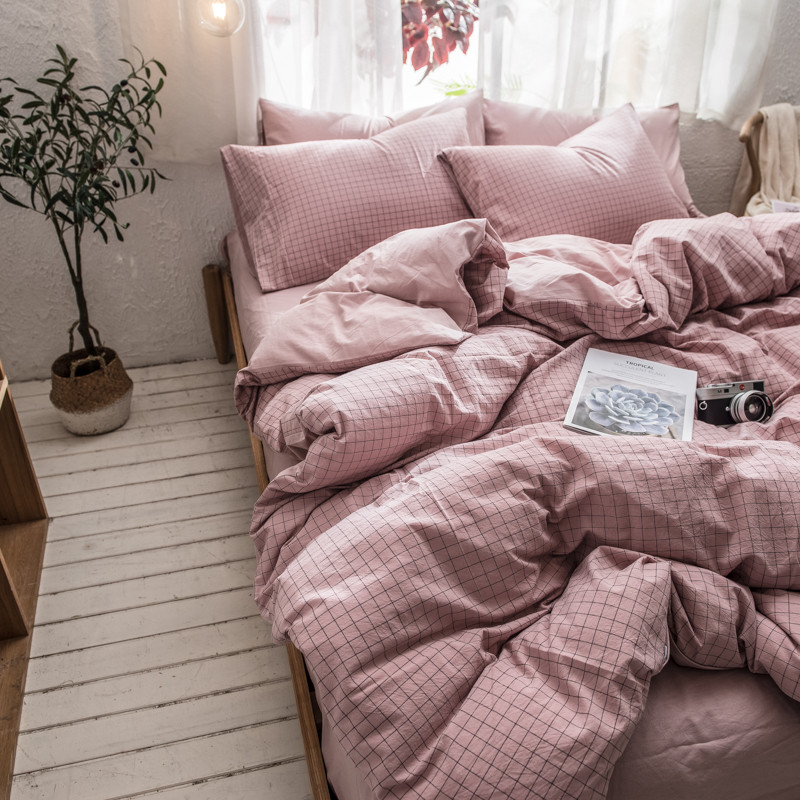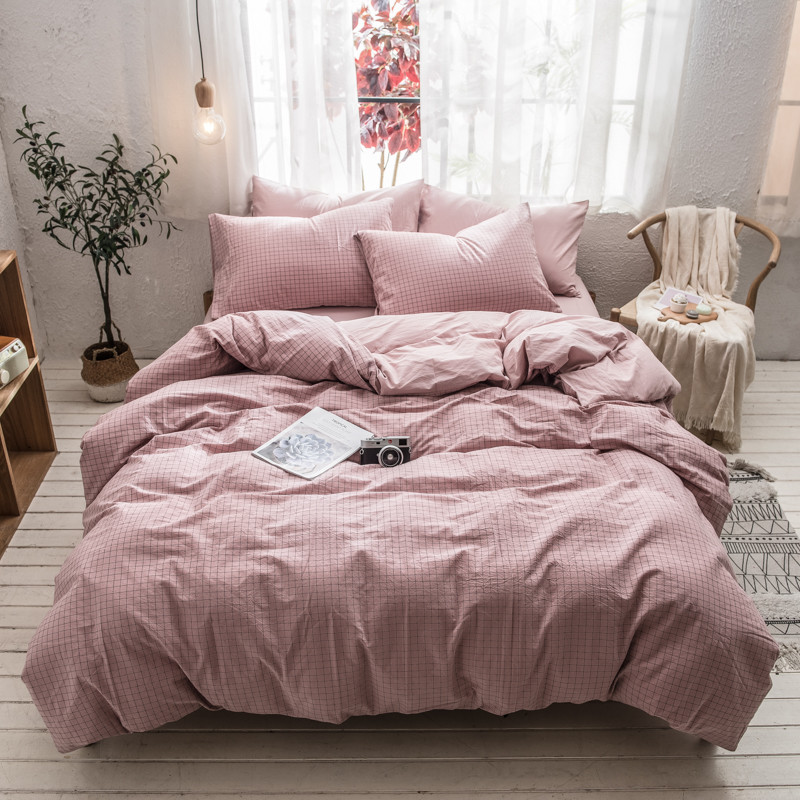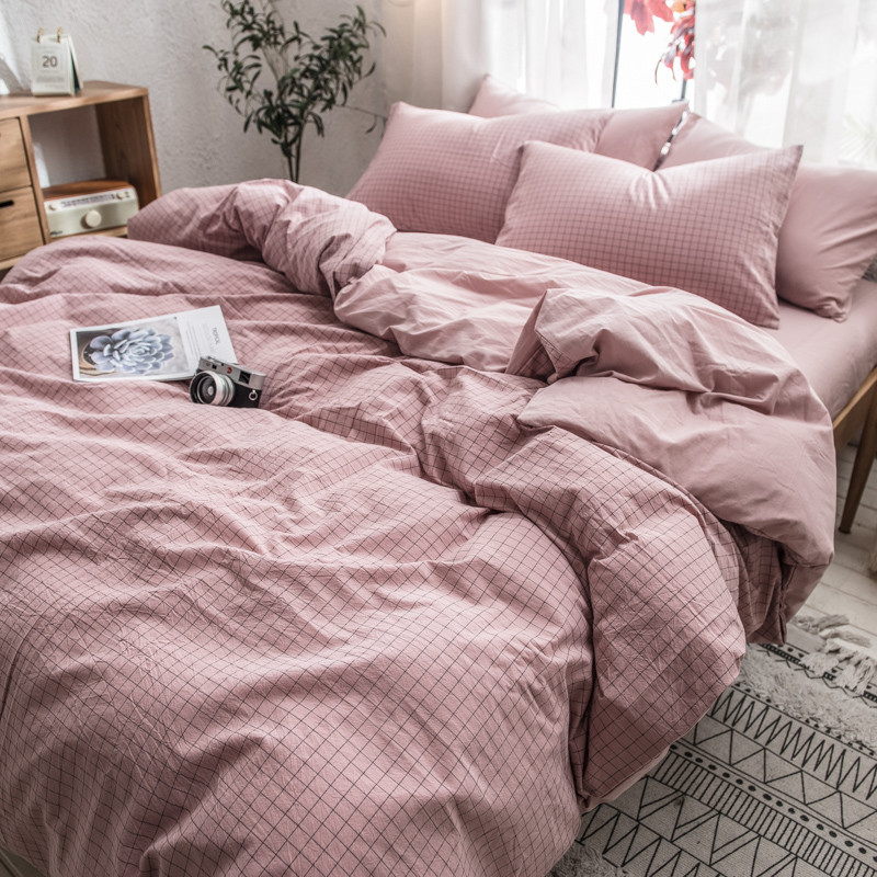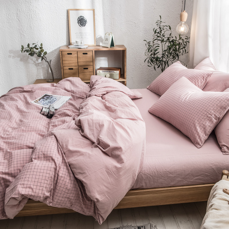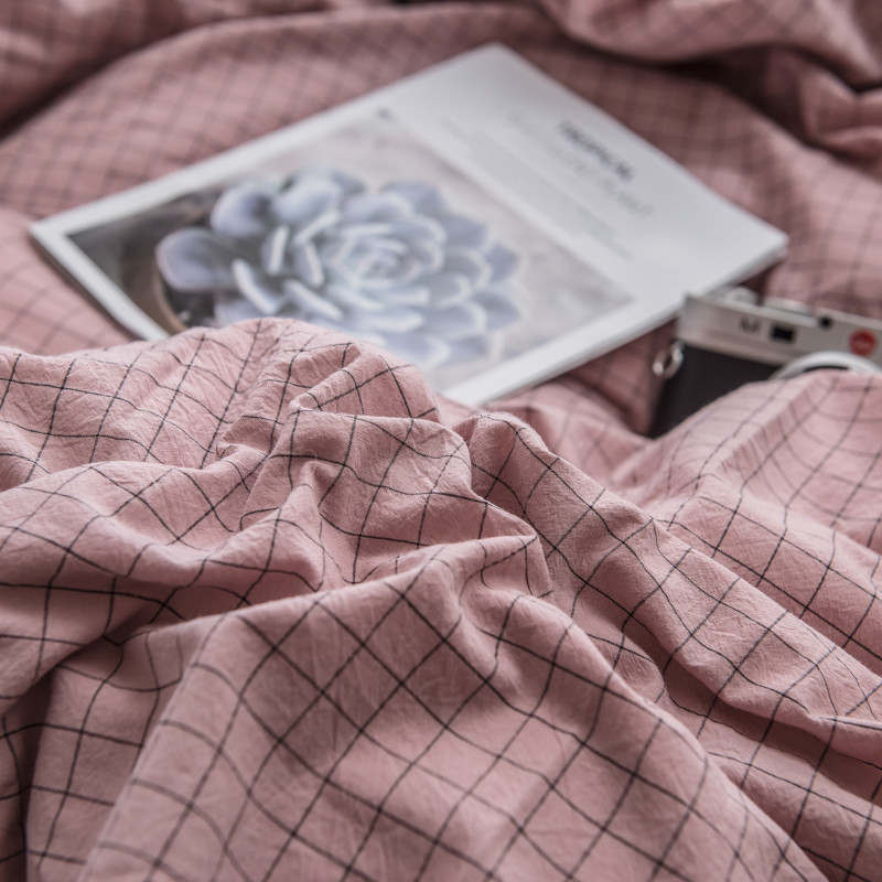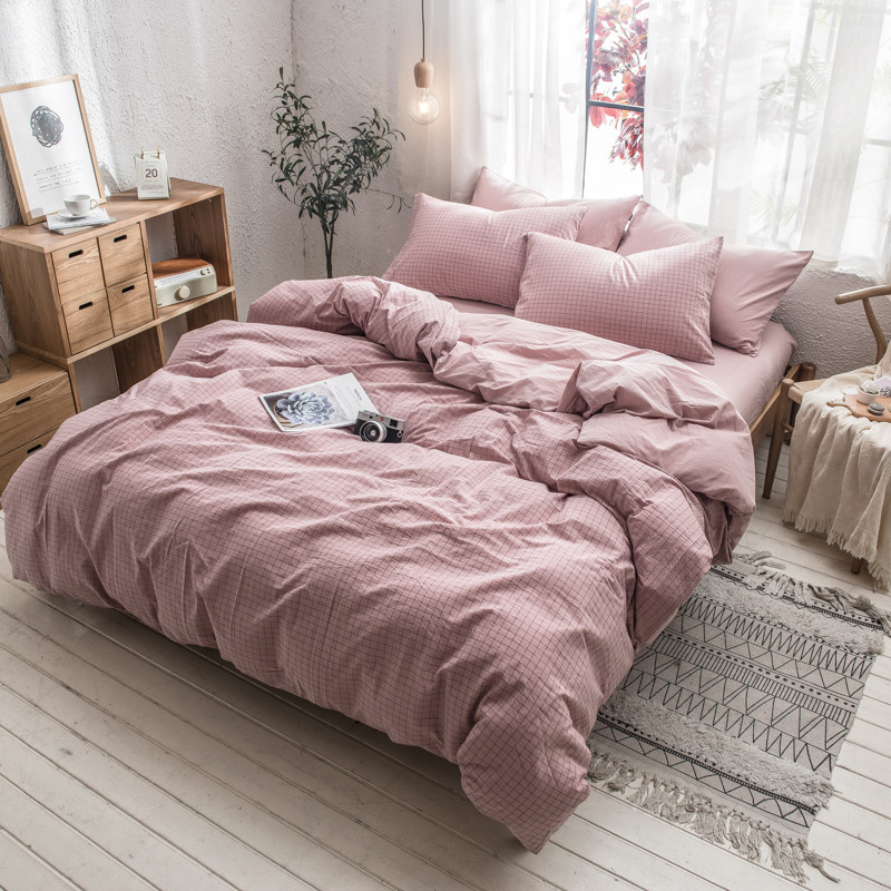 商品名称:佳梦达 2020新款色织全棉水洗双拼单被套 粉中格