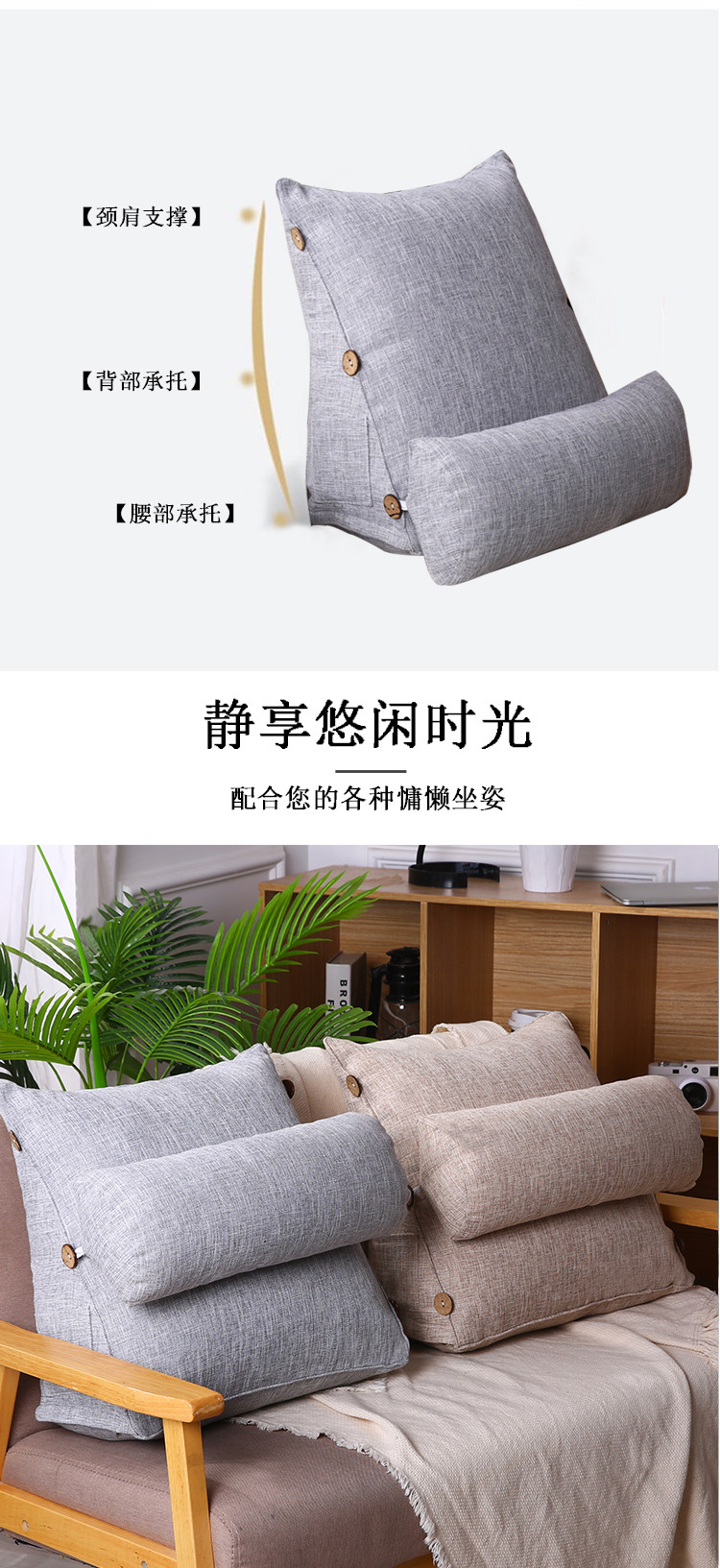商品名称:2020新款棉麻三角靠垫 床头靠垫软包沙发靠枕抱枕 可拆洗