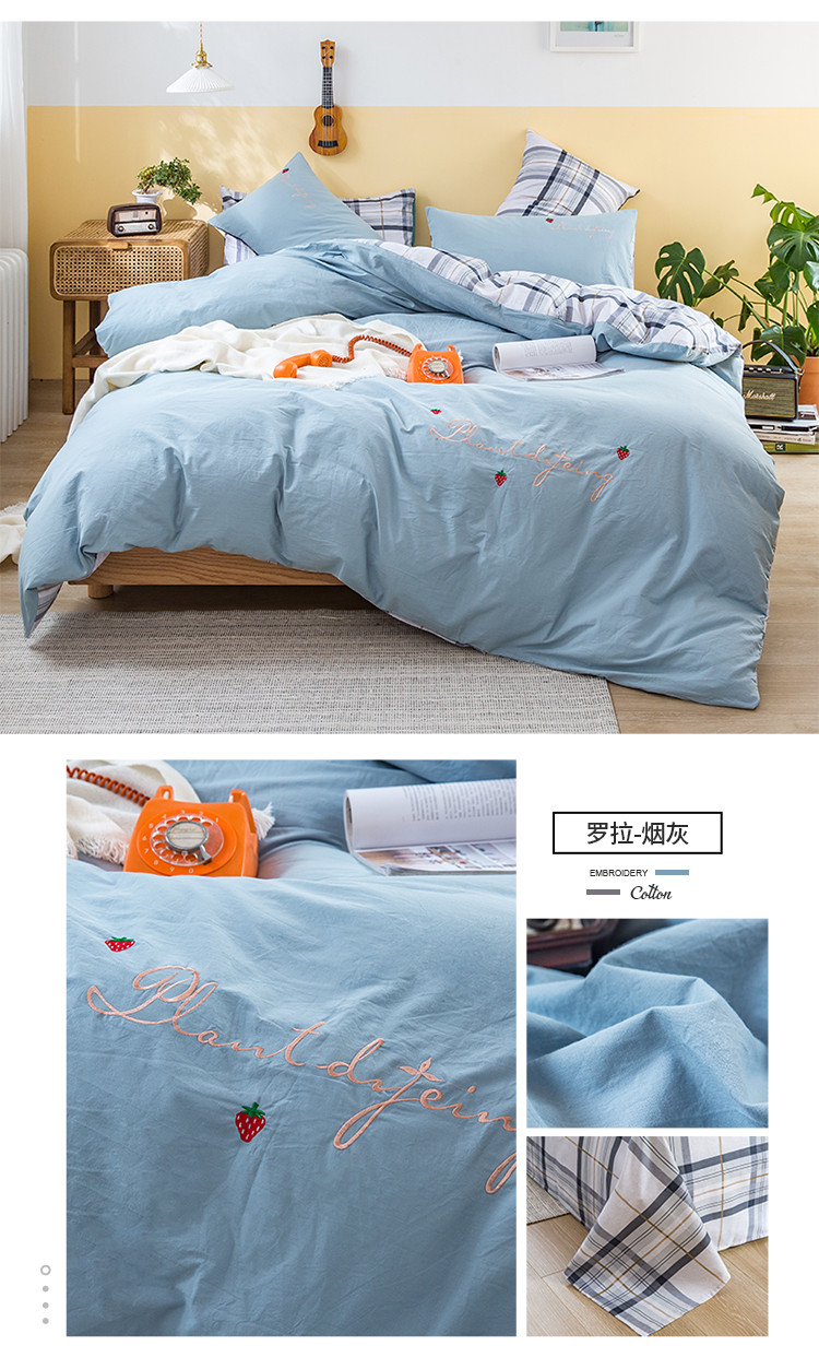(总)捌月全棉水洗棉刺绣印花四件套
