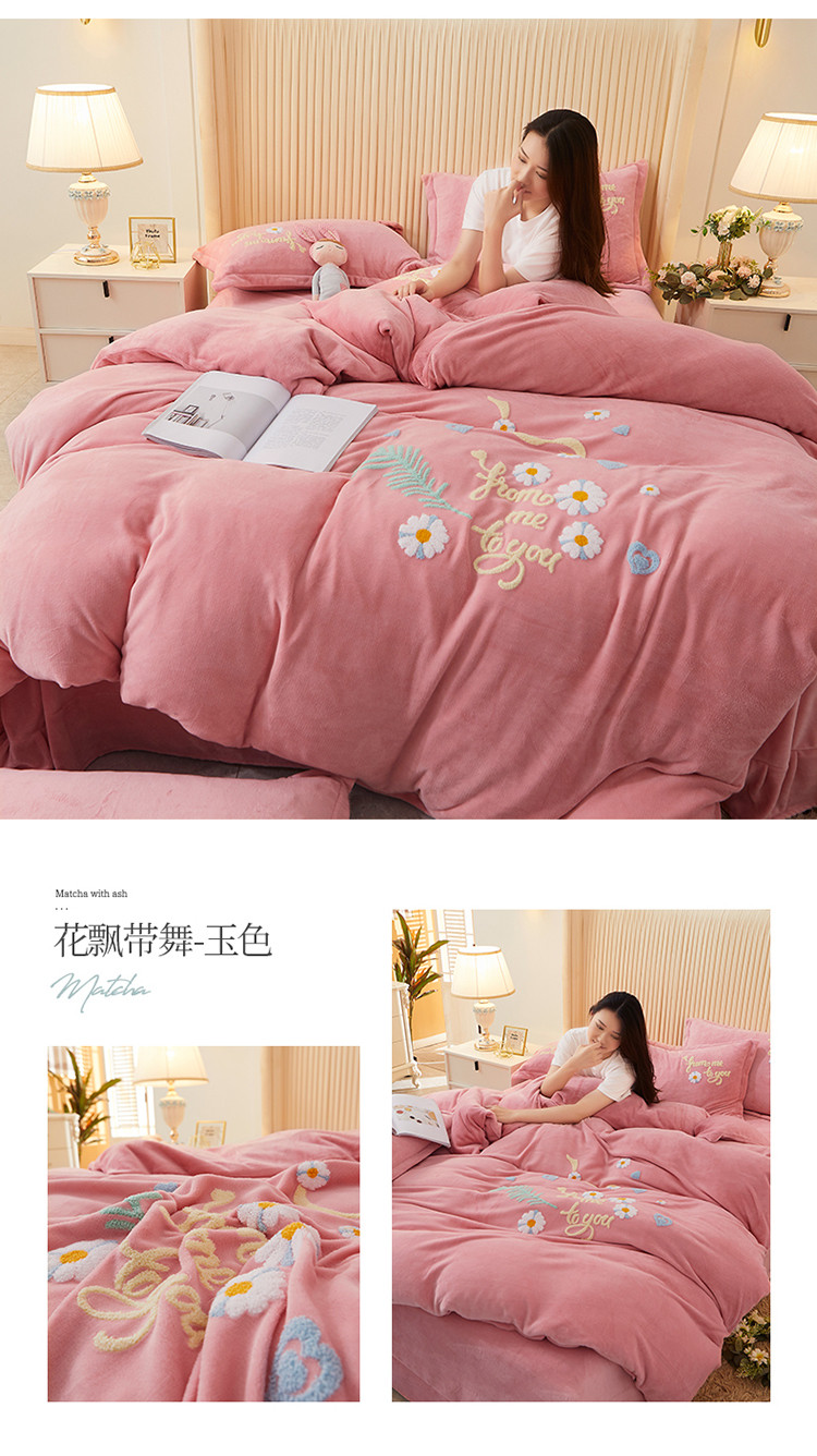 恋佳 2020新款牛奶绒毛巾绣四件套 花飘带舞玉色