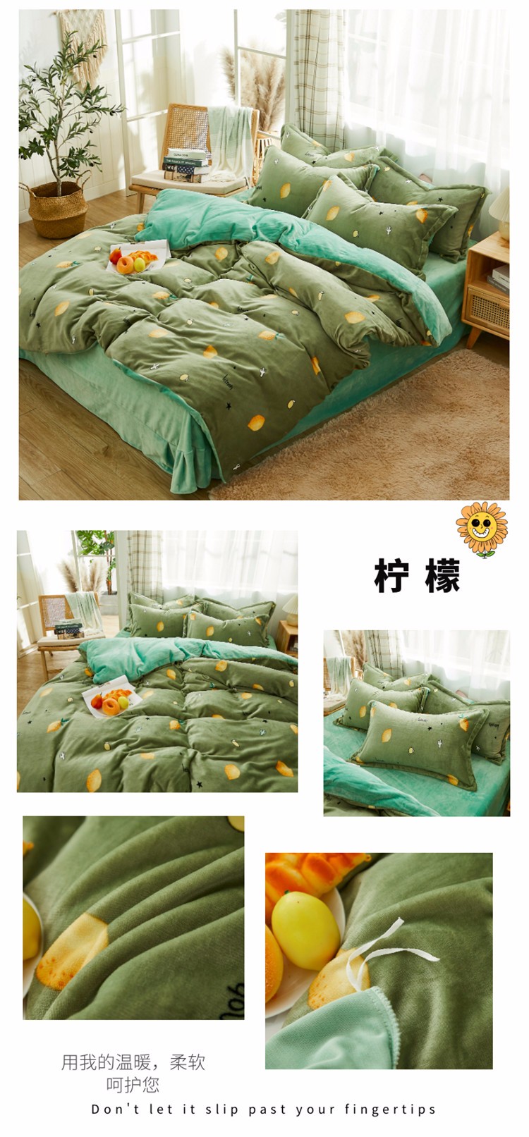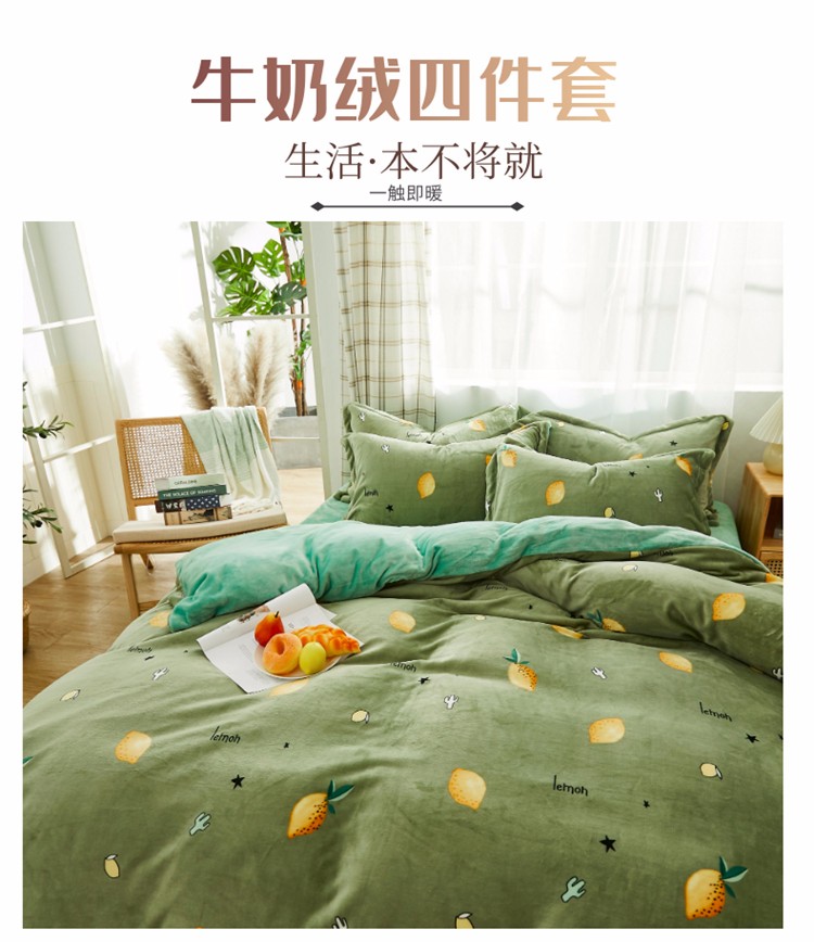 曼璐家纺 2025新款牛奶绒四件套 柠檬