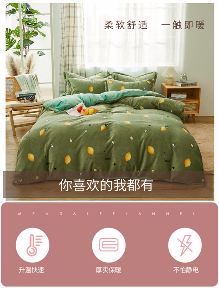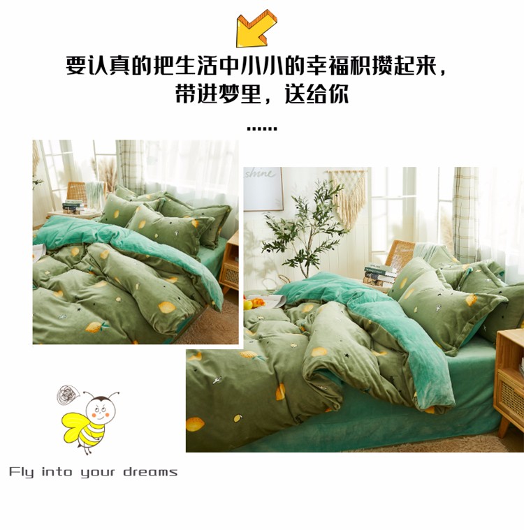 商品名称:曼璐家纺 2025新款牛奶绒四件套 柠檬