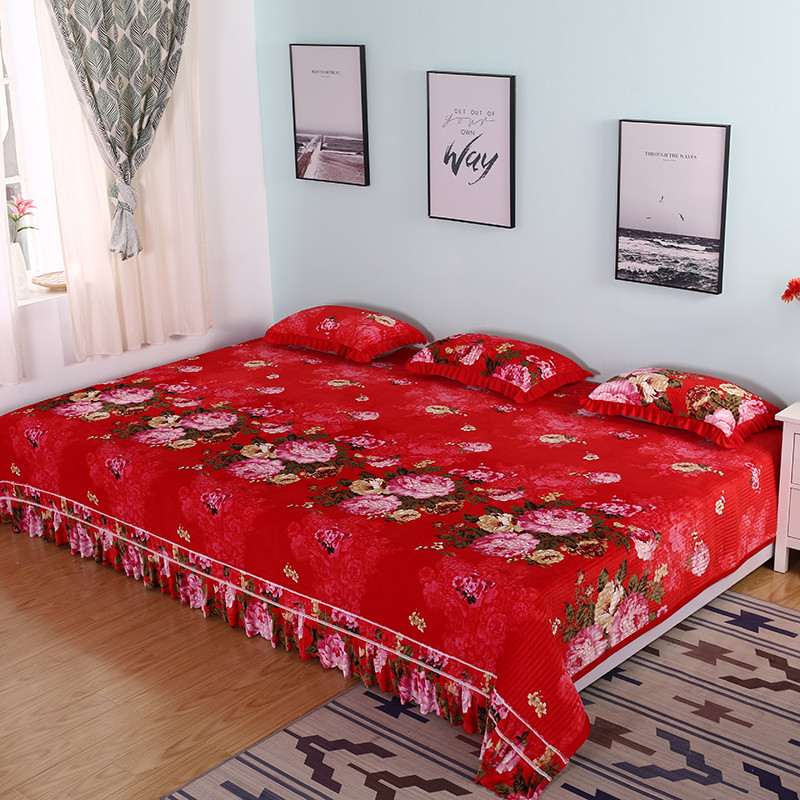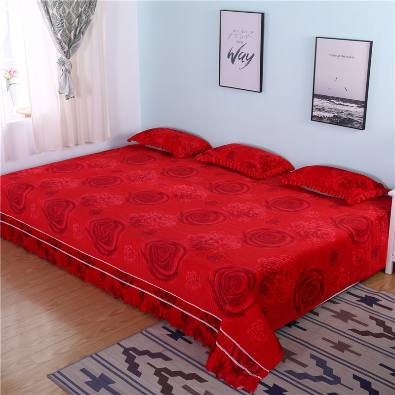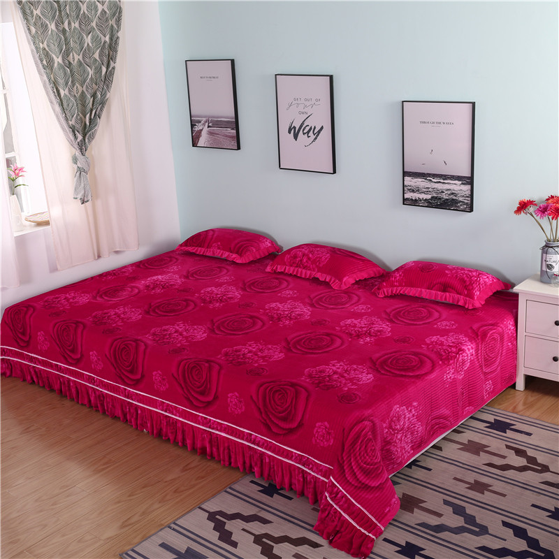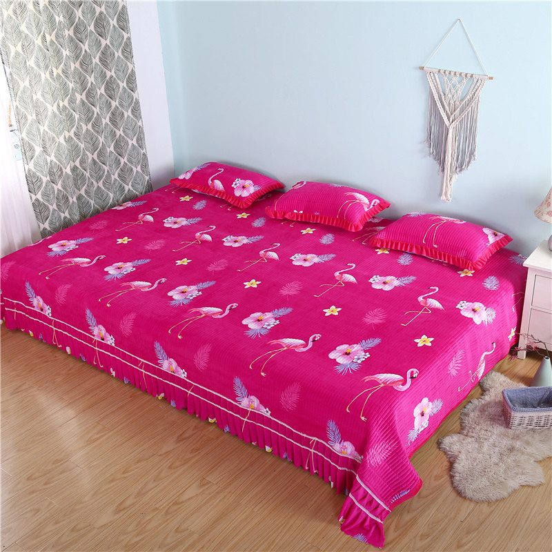 冬然 2022新款床盖牛奶绒夹棉床裙四件套单床裙单被套爱心格,爱心格