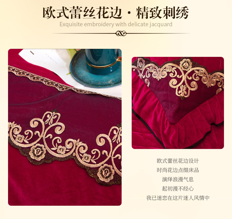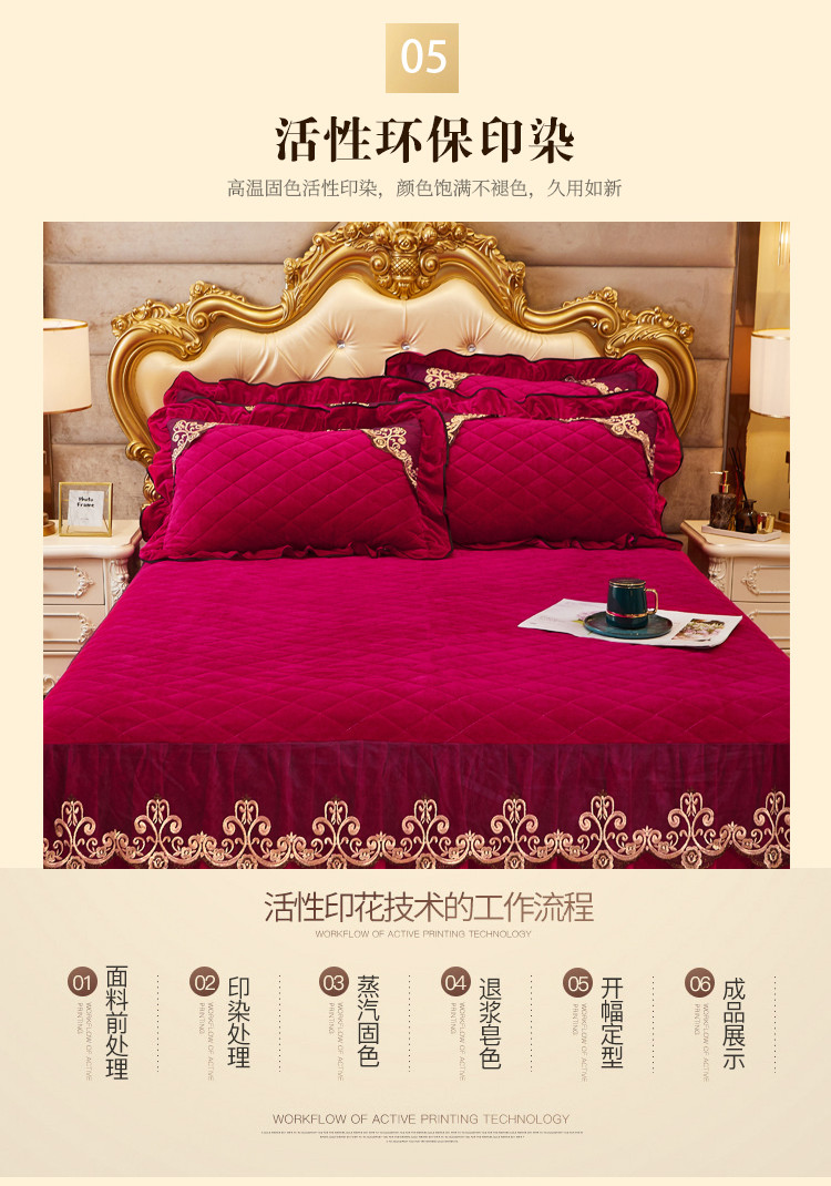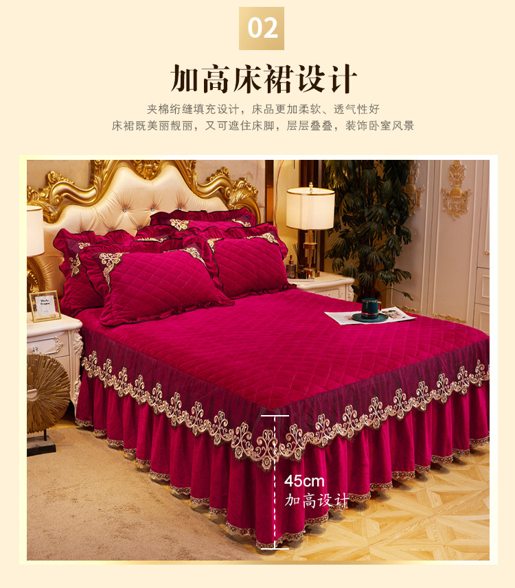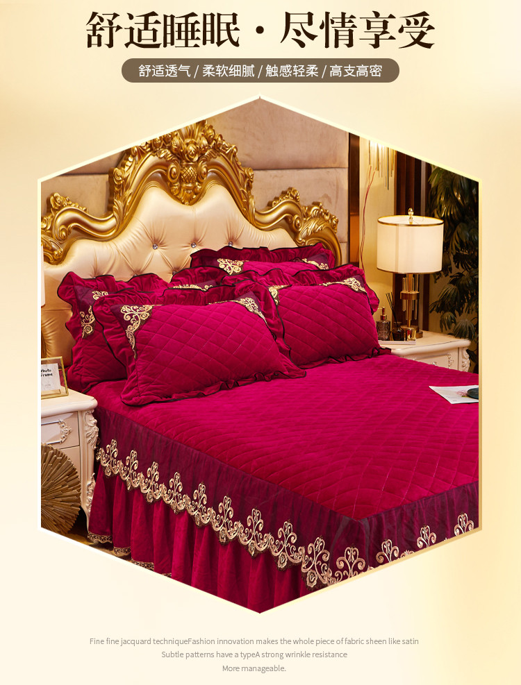 (总)星尚家纺 2024新款加厚保暖全消光牛奶绒夹棉床裙四件套-玫瑰之恋,粉玉,寐紫,浅蓝,水绿