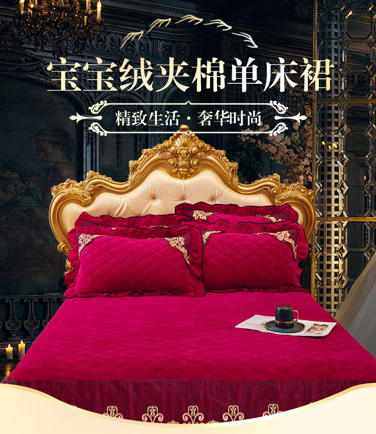 星尚2020新款宝宝绒夹棉单床裙水晶绒法莱绒婴儿绒 酒红
