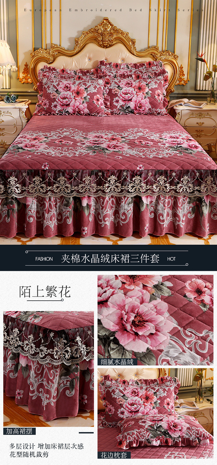 宜凡家纺 2021新款夹棉水晶绒单品床裙 陌上繁花