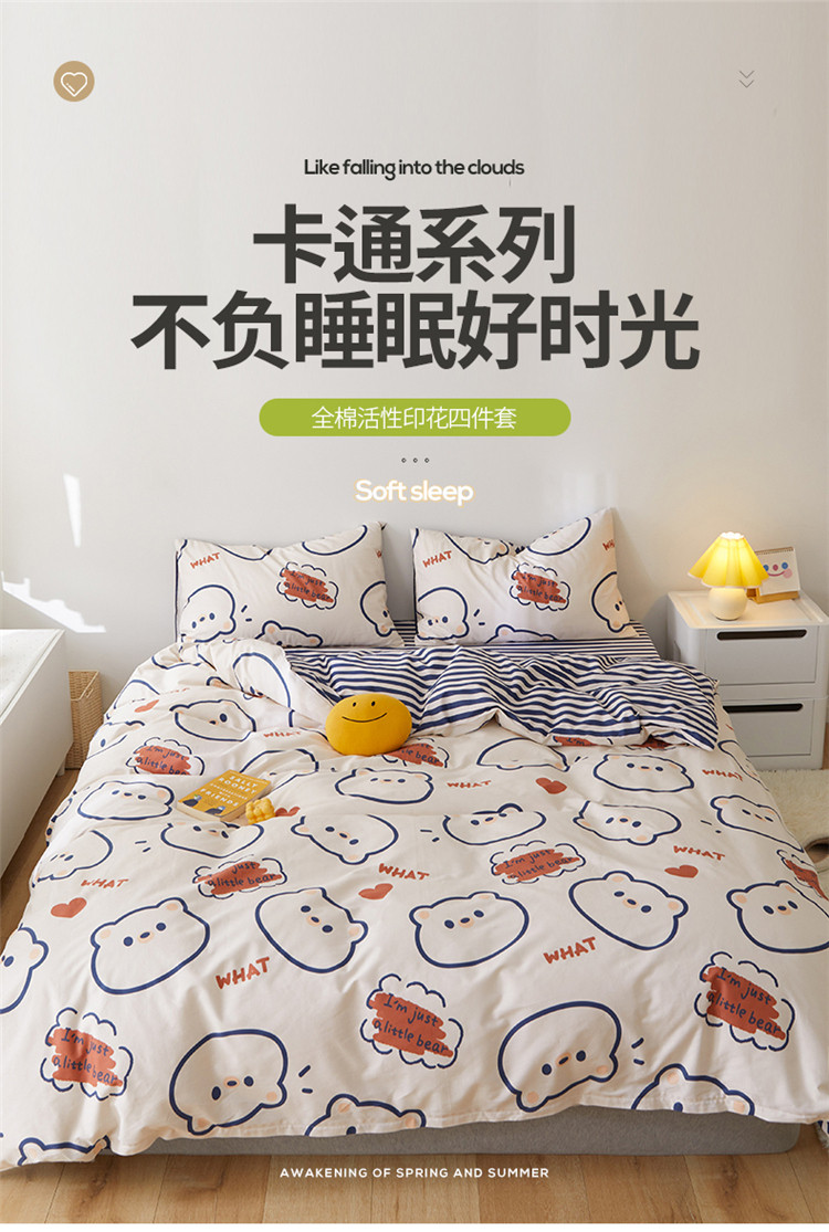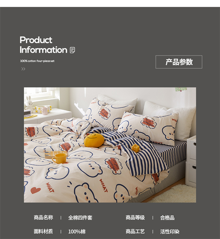 商品名称:窝米 2021新款春季全棉卡通四件套 简易熊