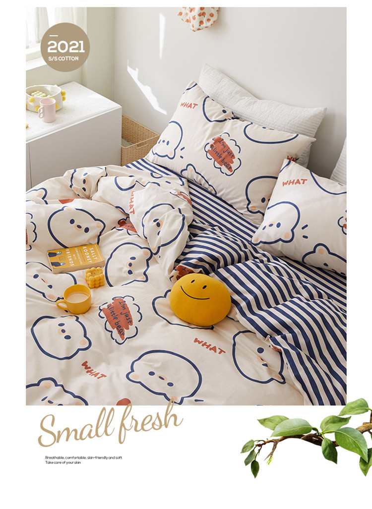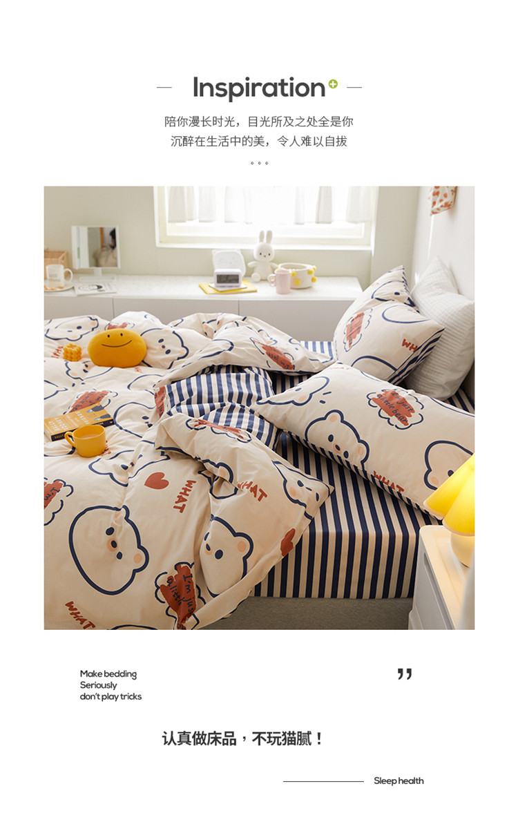 窝米 2021新款春季全棉卡通四件套 简易熊