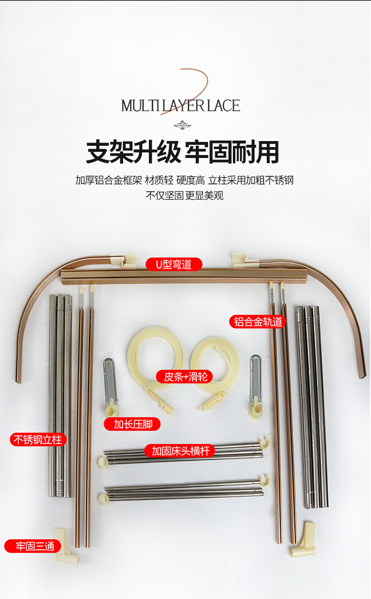 (总)舞夜盛世 2025新款U型导轨轨道宫廷落地蚊帐-镜花水月,淡雅灰,蜜桃粉,奶油白,樱花玉
