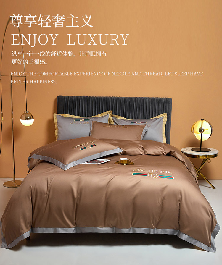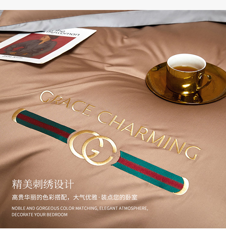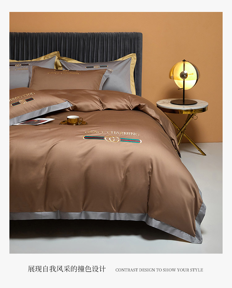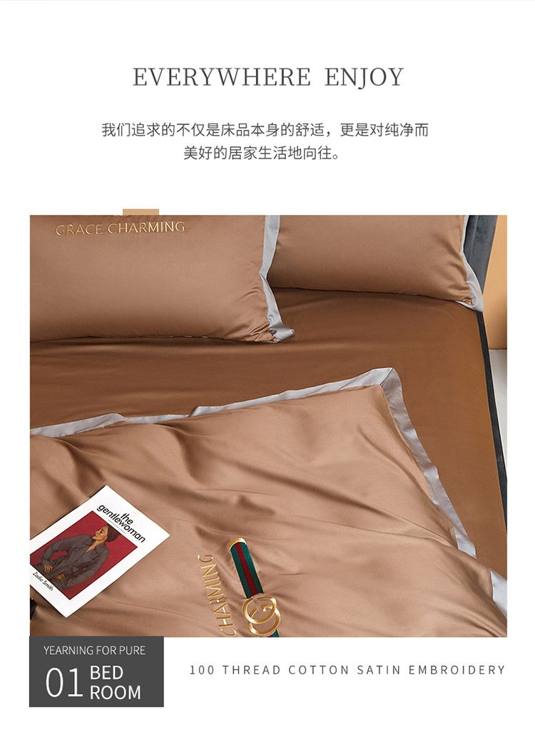 爱缦 2021新款格蕾丝棚拍100支澳棉四件套 巧克力色