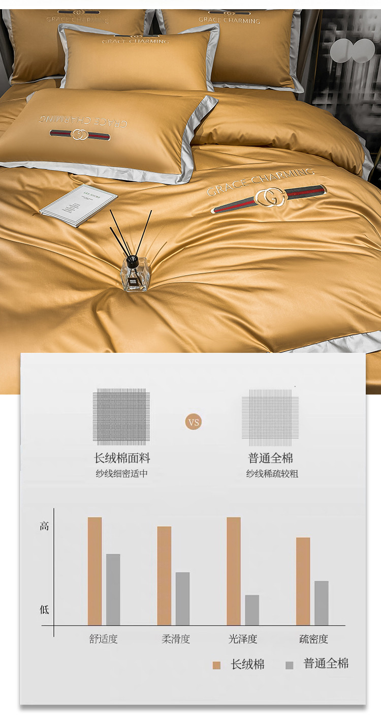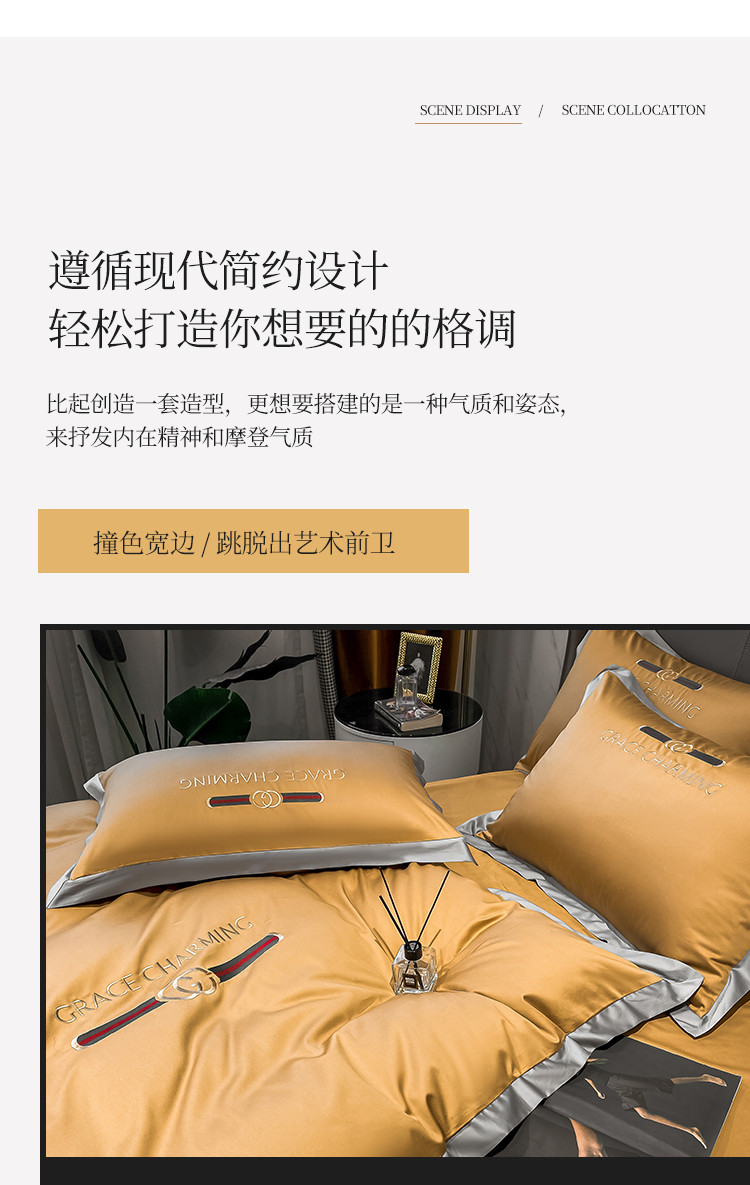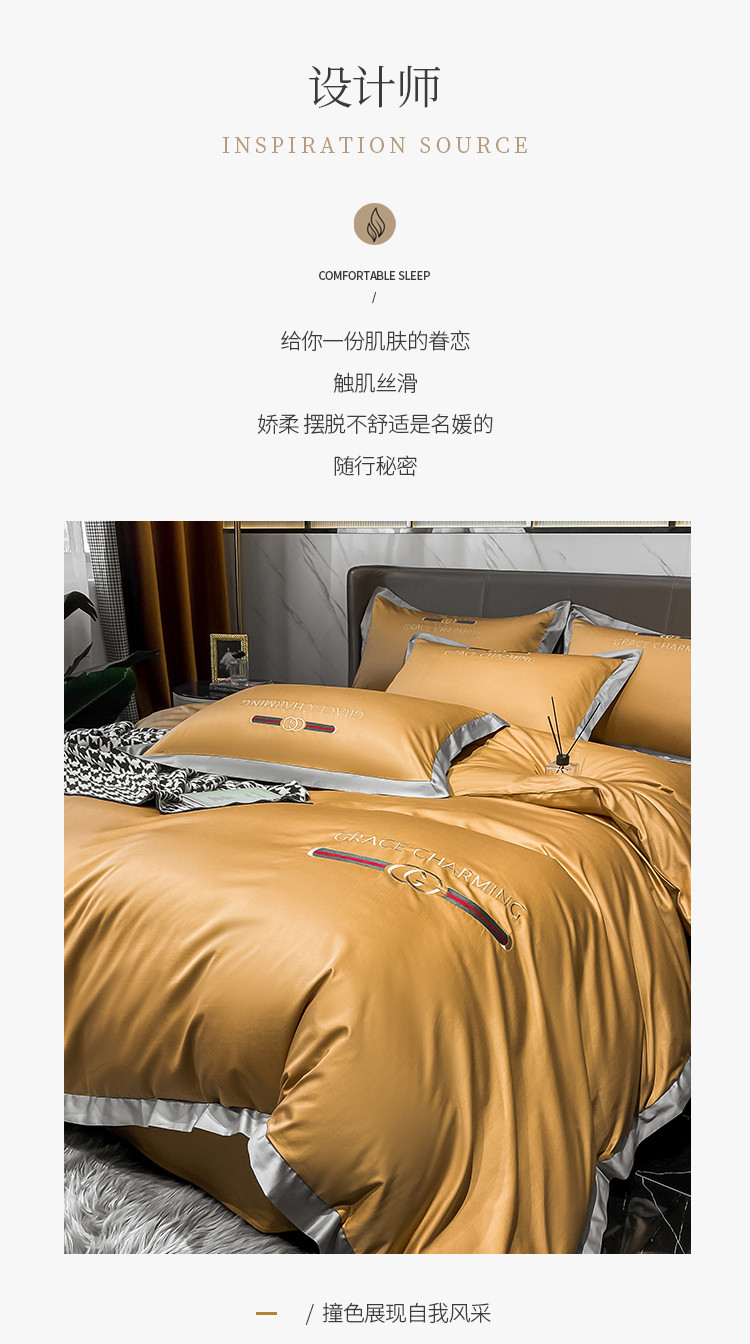 商品名称:爱缦 2021新款格蕾丝实拍100支澳棉四件套 古今黄