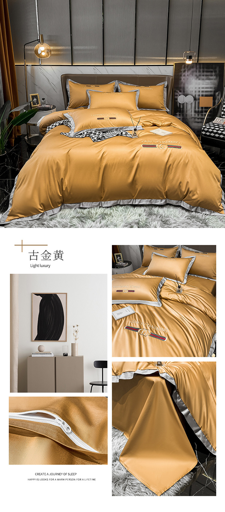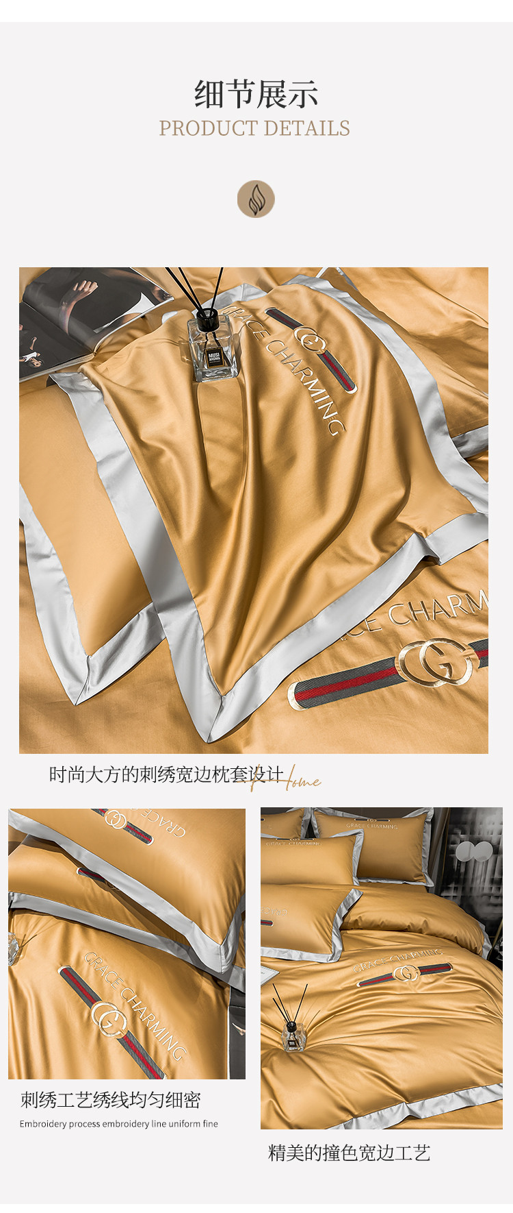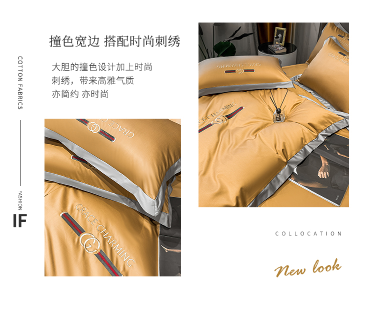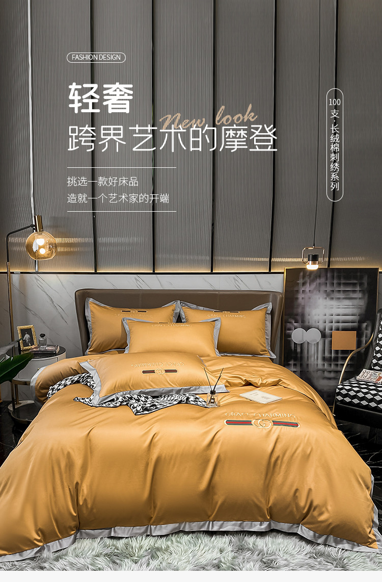爱缦 2021新款格蕾丝实拍100支澳棉四件套 古今黄