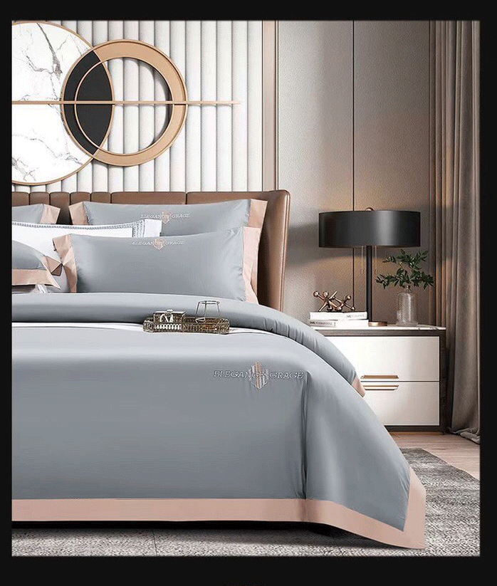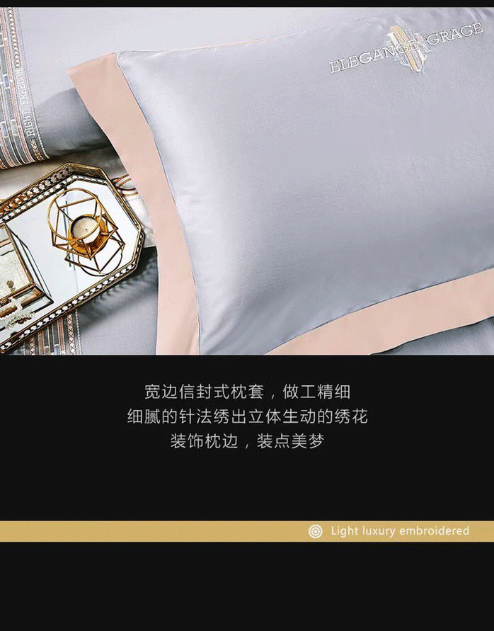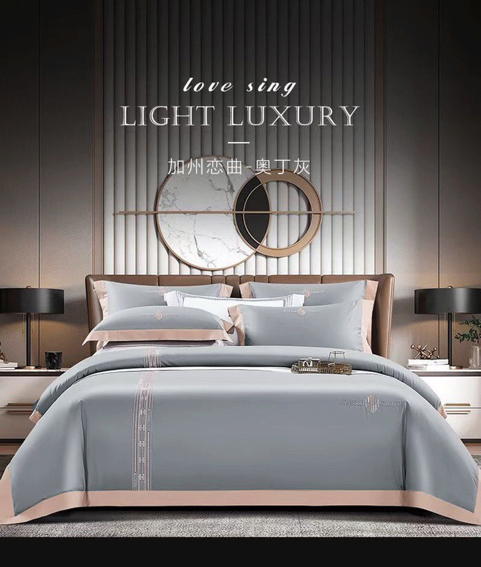玖玖爱 2021新款160s全棉贡缎四件套加州恋曲 奥丁灰