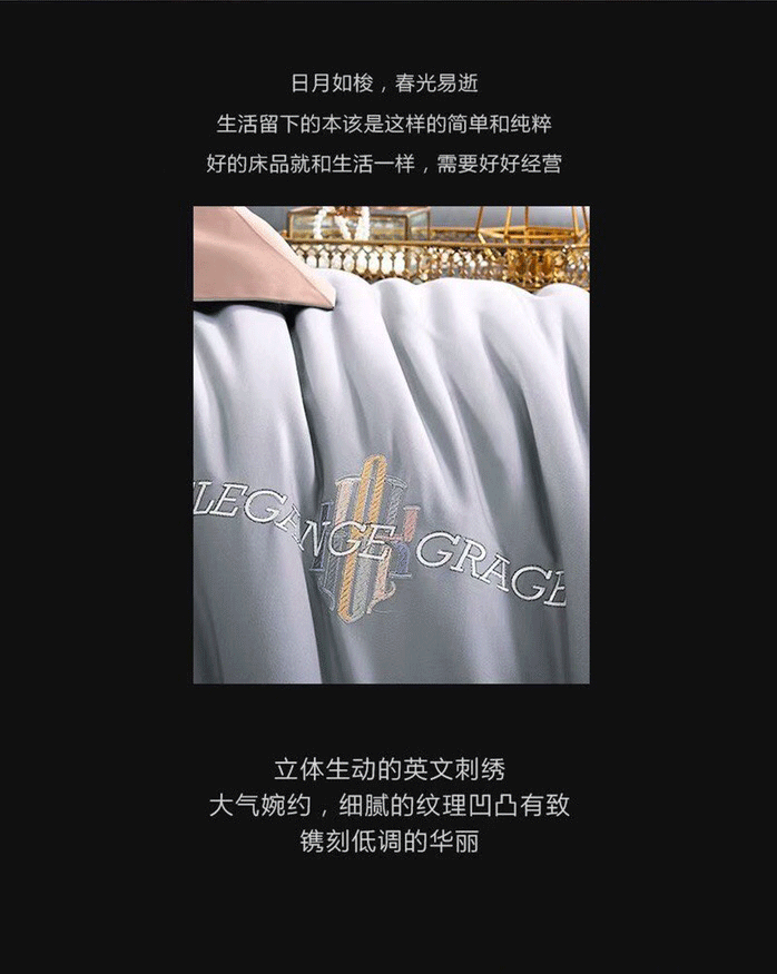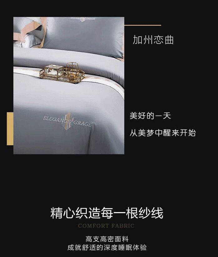 商品名称:玖玖爱 2021新款160s全棉贡缎四件套加州恋曲 奥丁灰