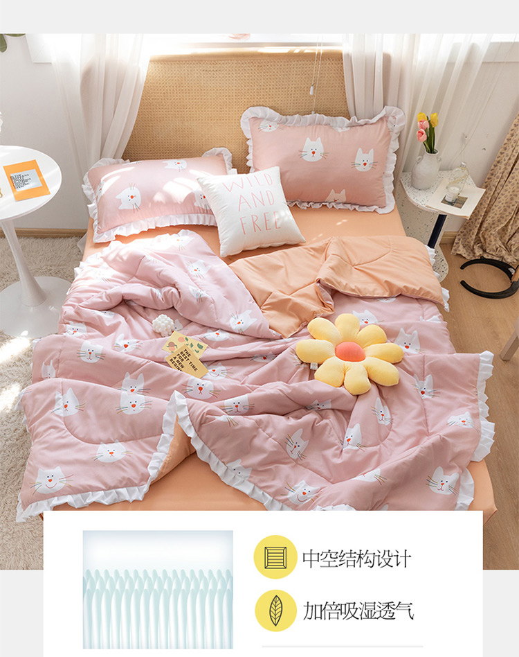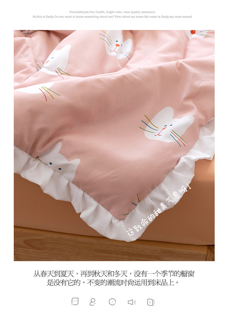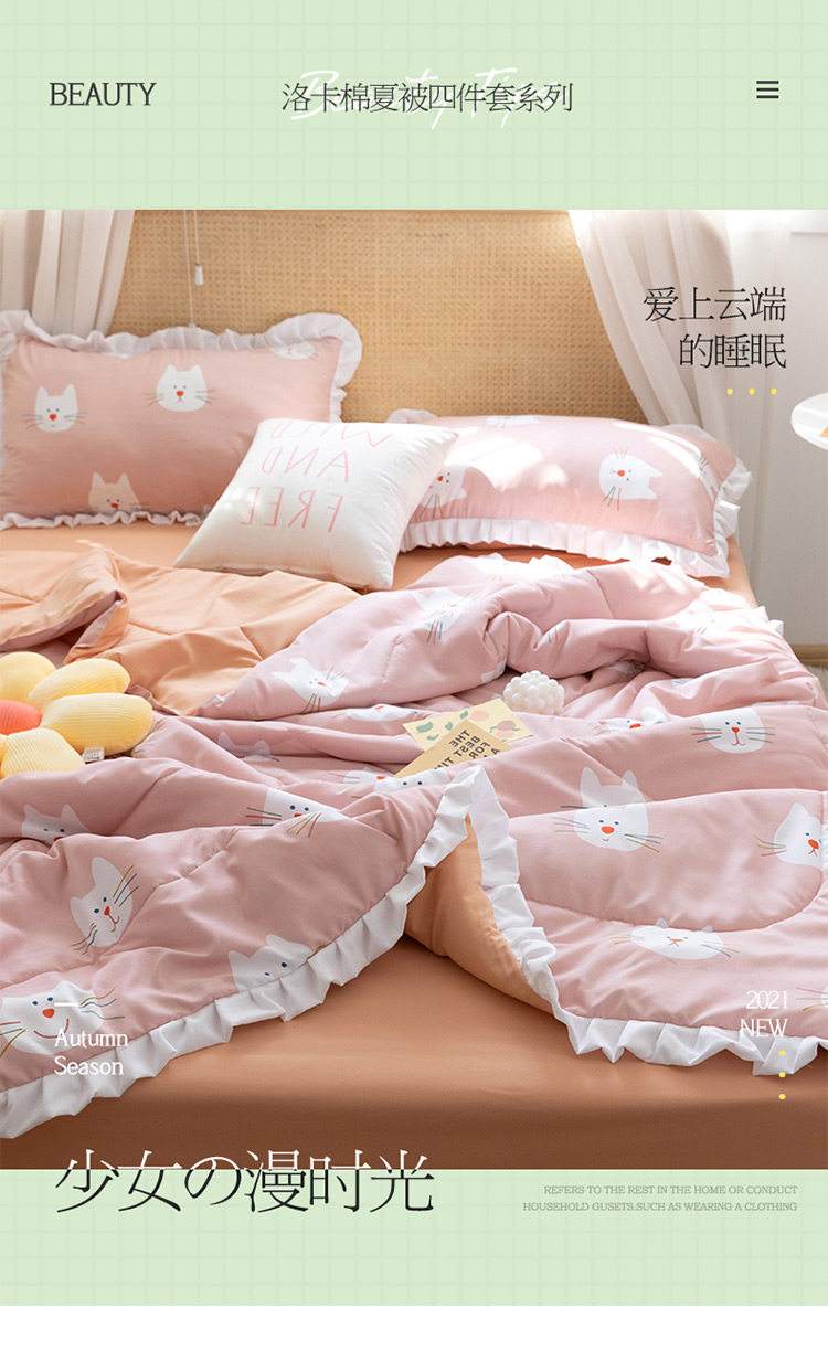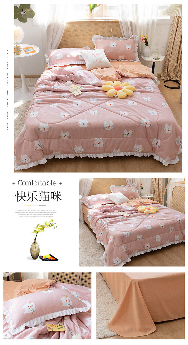 商品名称:红粉佳人 2021新款韩版洛卡棉水洗棉夏被 快乐猫咪