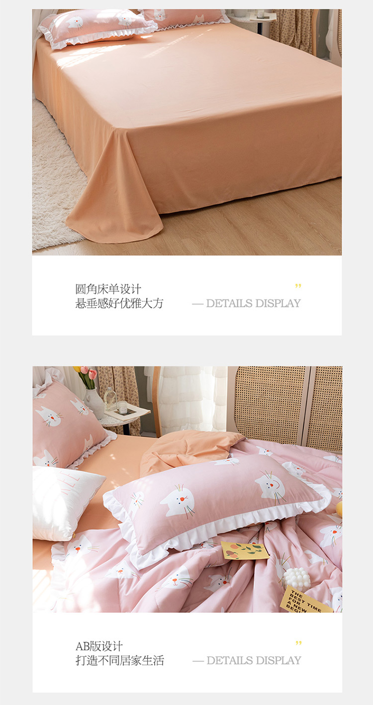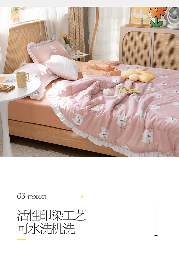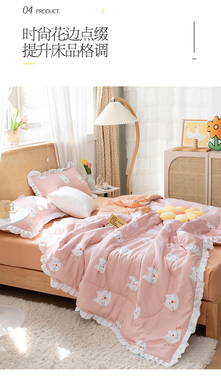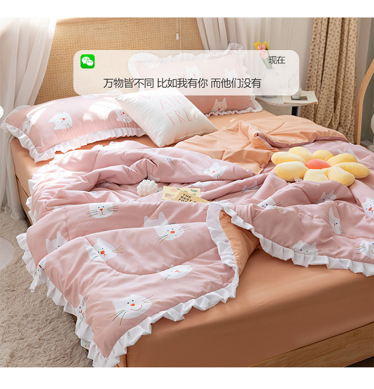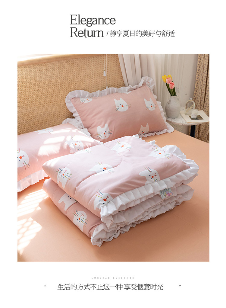 商品名称:红粉佳人 2021新款韩版洛卡棉水洗棉夏被 快乐猫咪