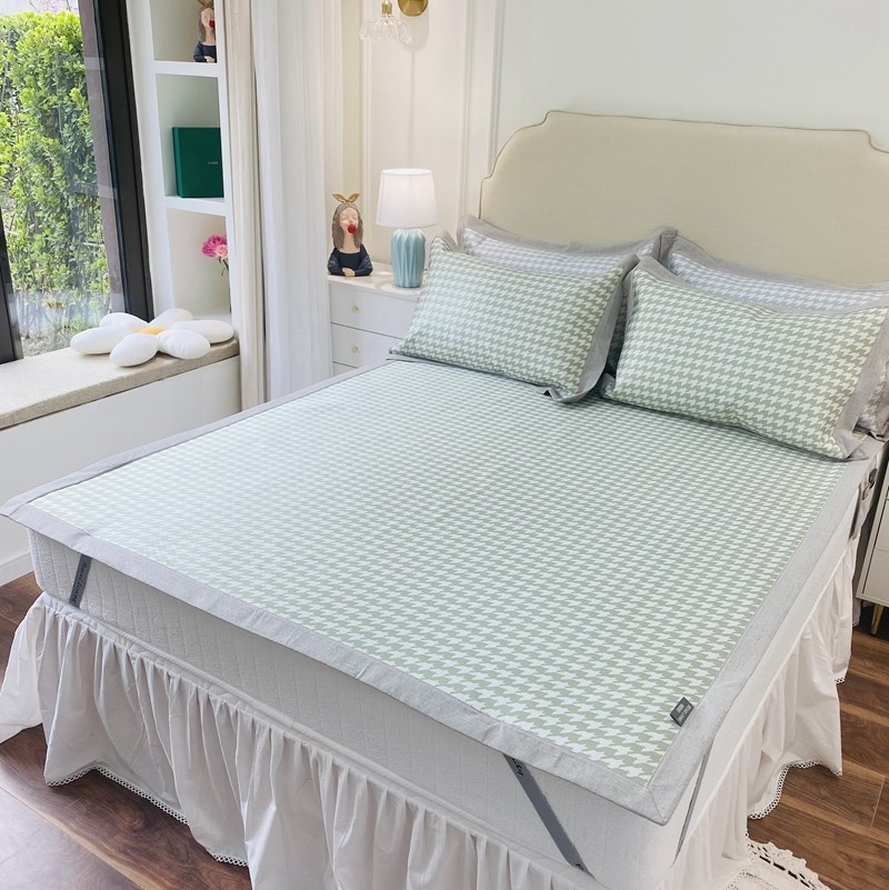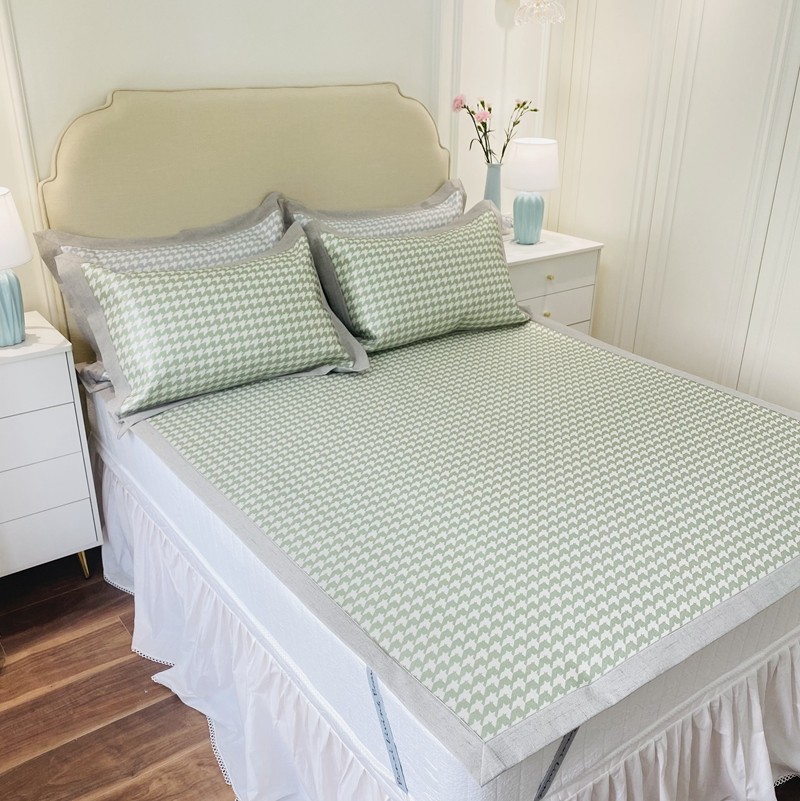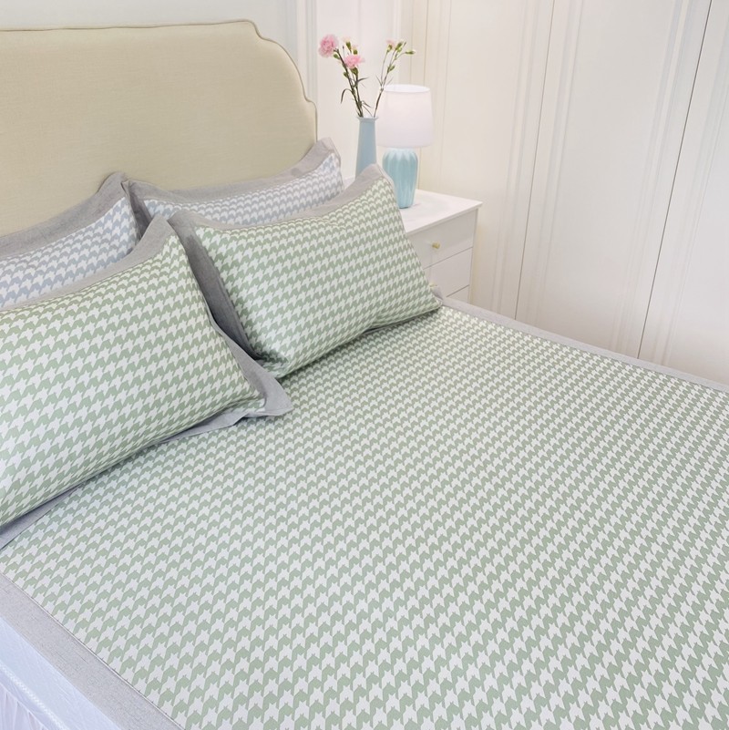 本希家居 新款高端可水洗冰丝席数码印花 千鸟格-抹茶绿