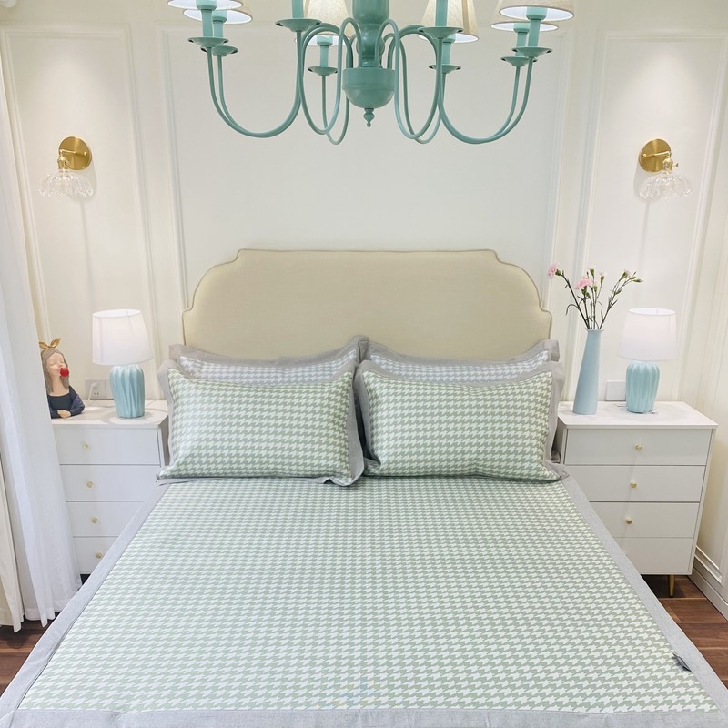 商品名称:本希家居 新款高端可水洗冰丝席数码印花 千鸟格-抹茶绿
