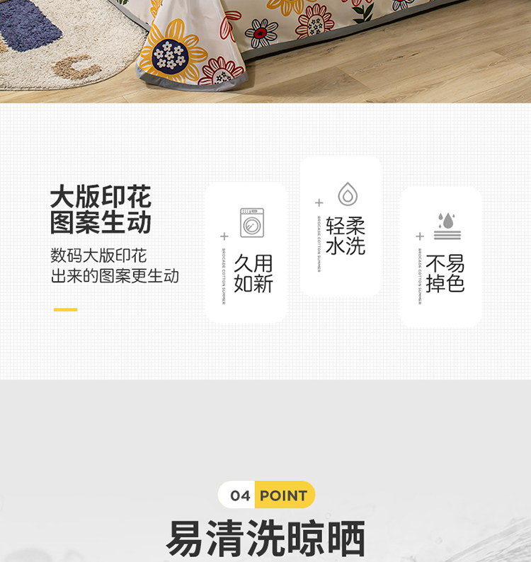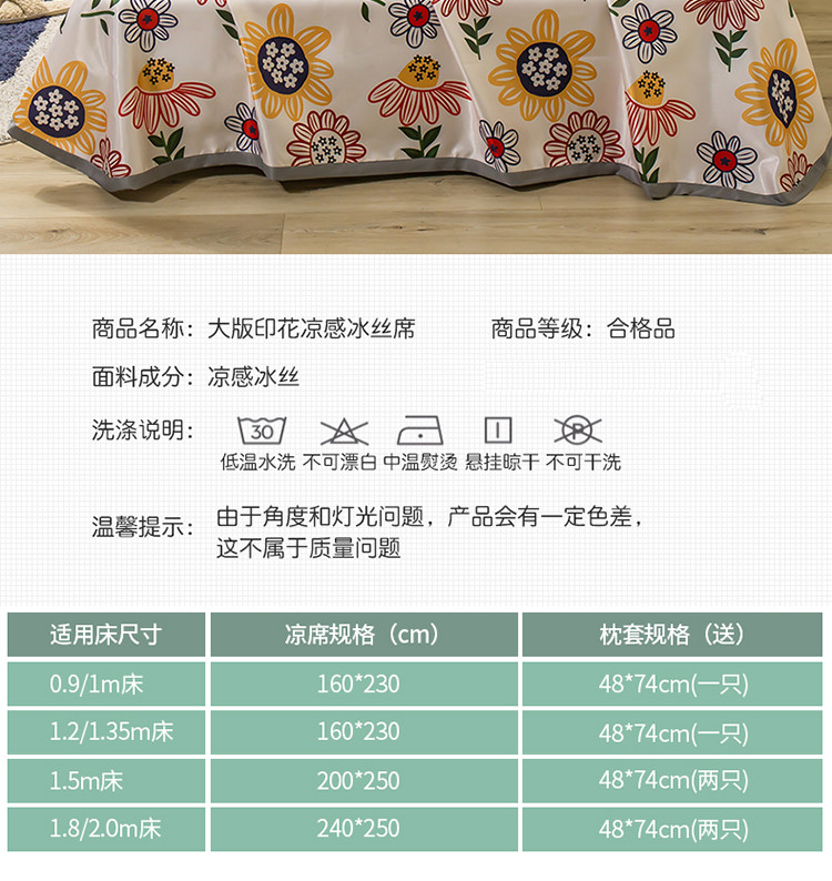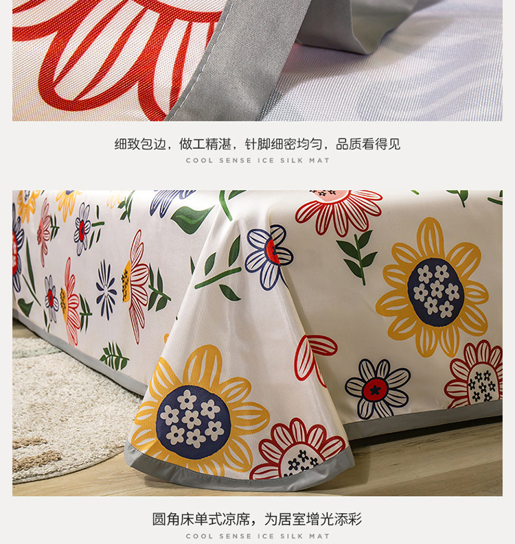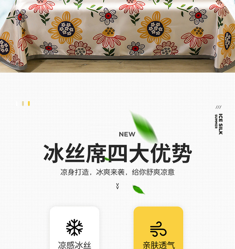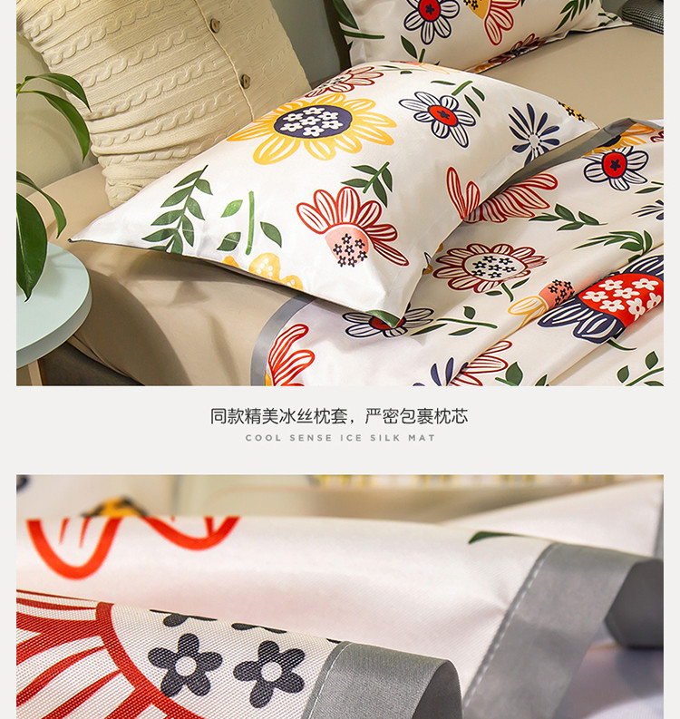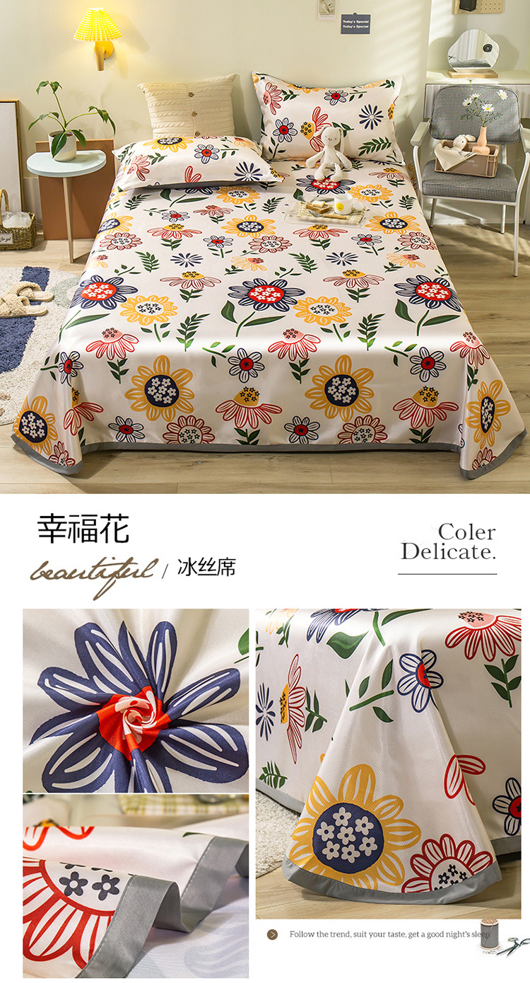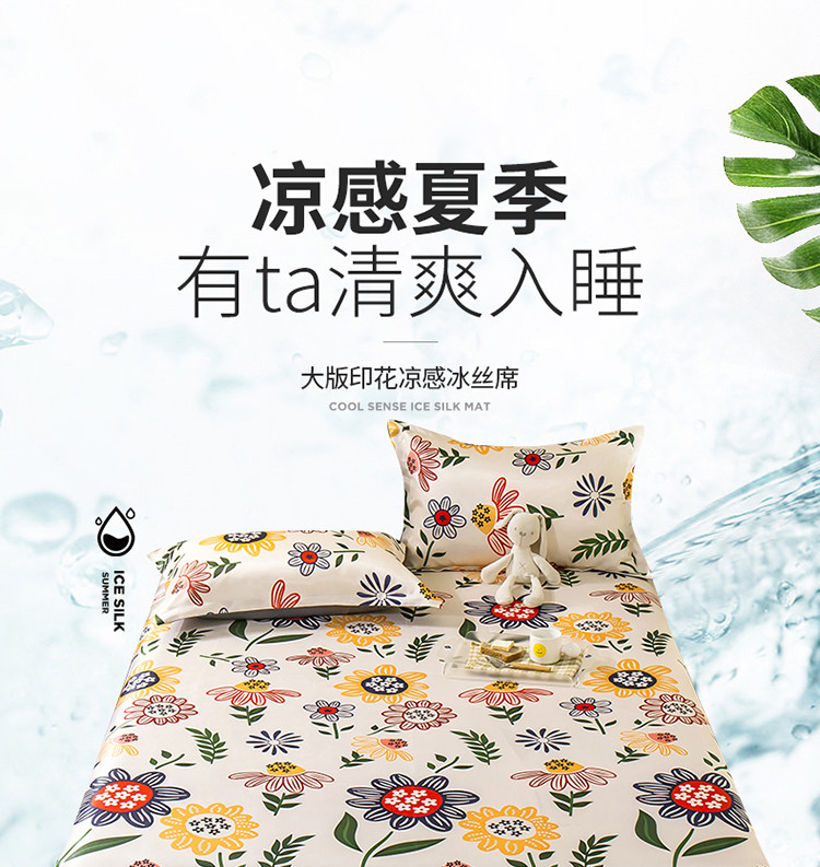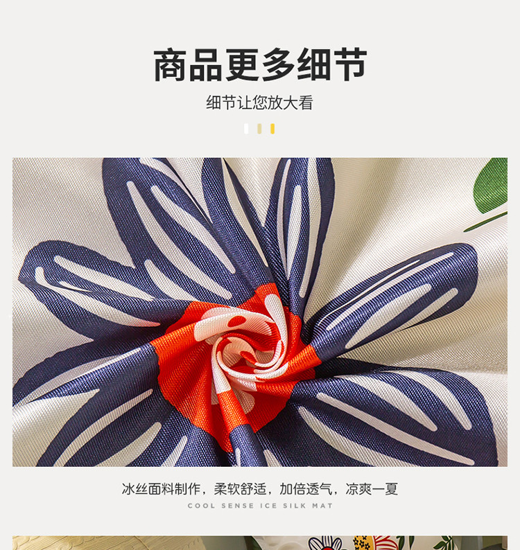 商品名称:琪格格 2022新款大版印花凉感冰丝席三件套 幸福花