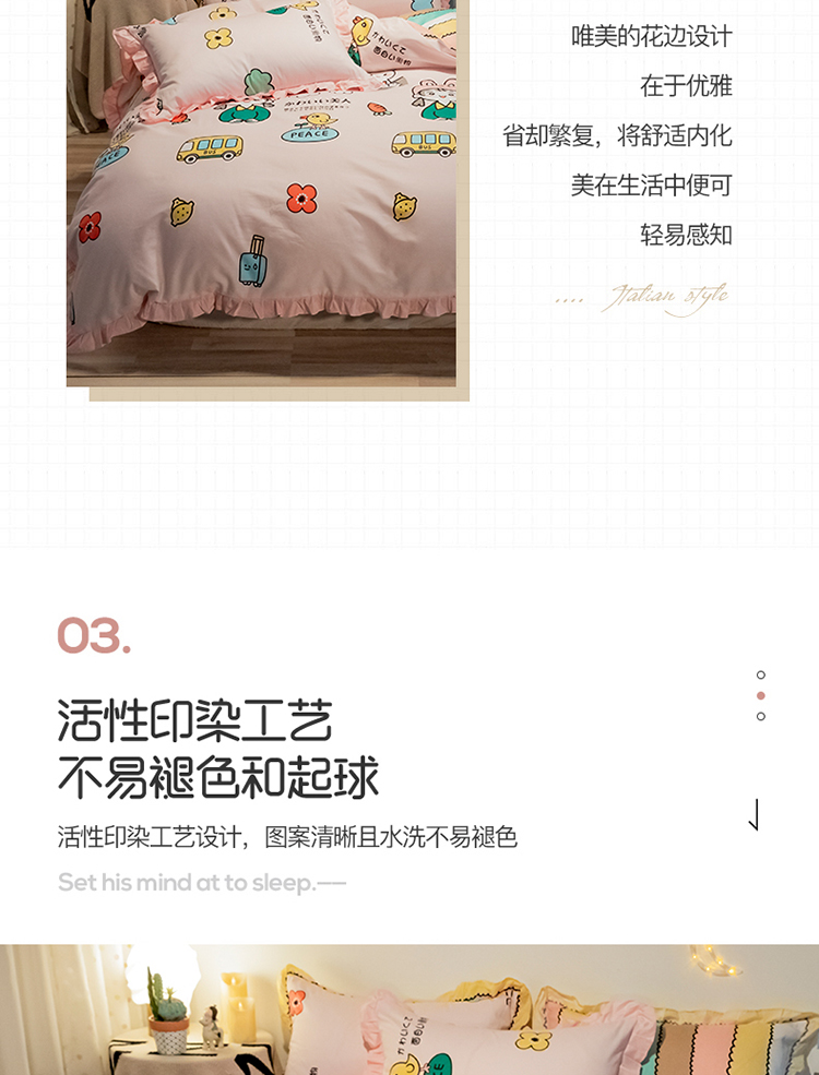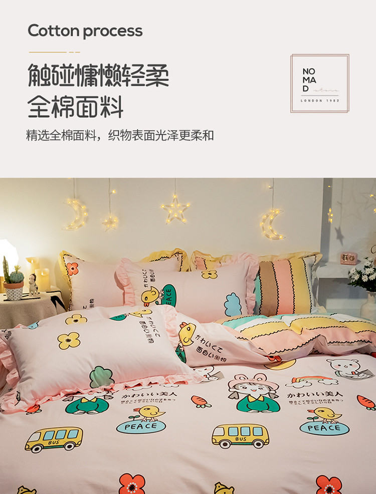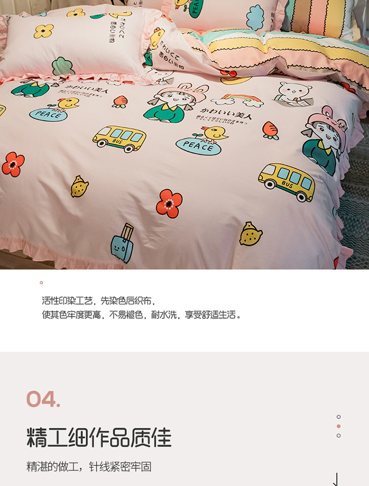 商品名称:琪格格 2022新款工艺款裙边全棉印花四件套 仙本娜粉