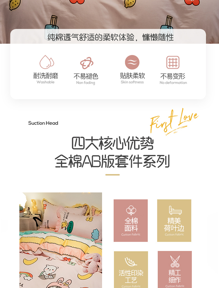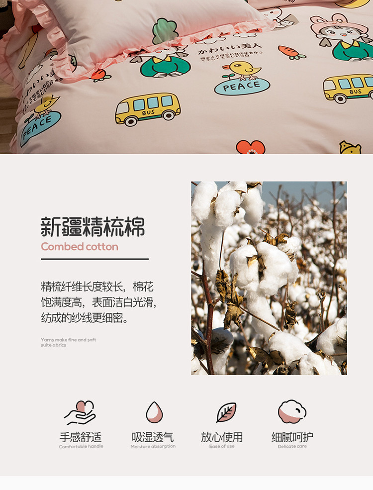 (总)琪格格纺织 2025新款全棉纯棉13372小清新四件套,爱心兔,白兔与熊,彩霞,美郁-紫,萌心兔,皮皮兔,苏珊花园,微雨,小粉兔,熊猫