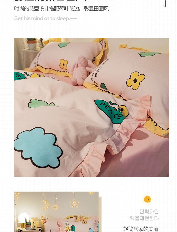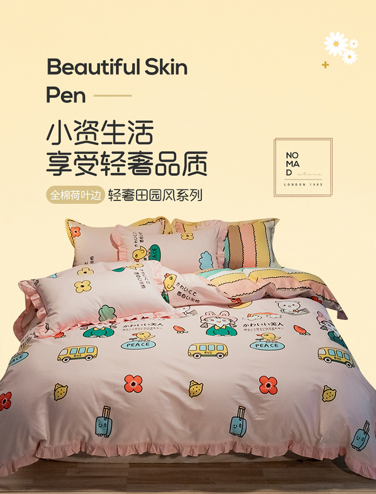 琪格格 2022新款工艺款裙边全棉印花四件套 仙本娜粉