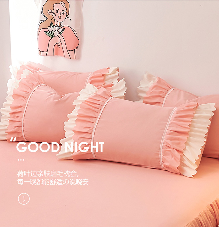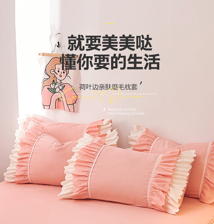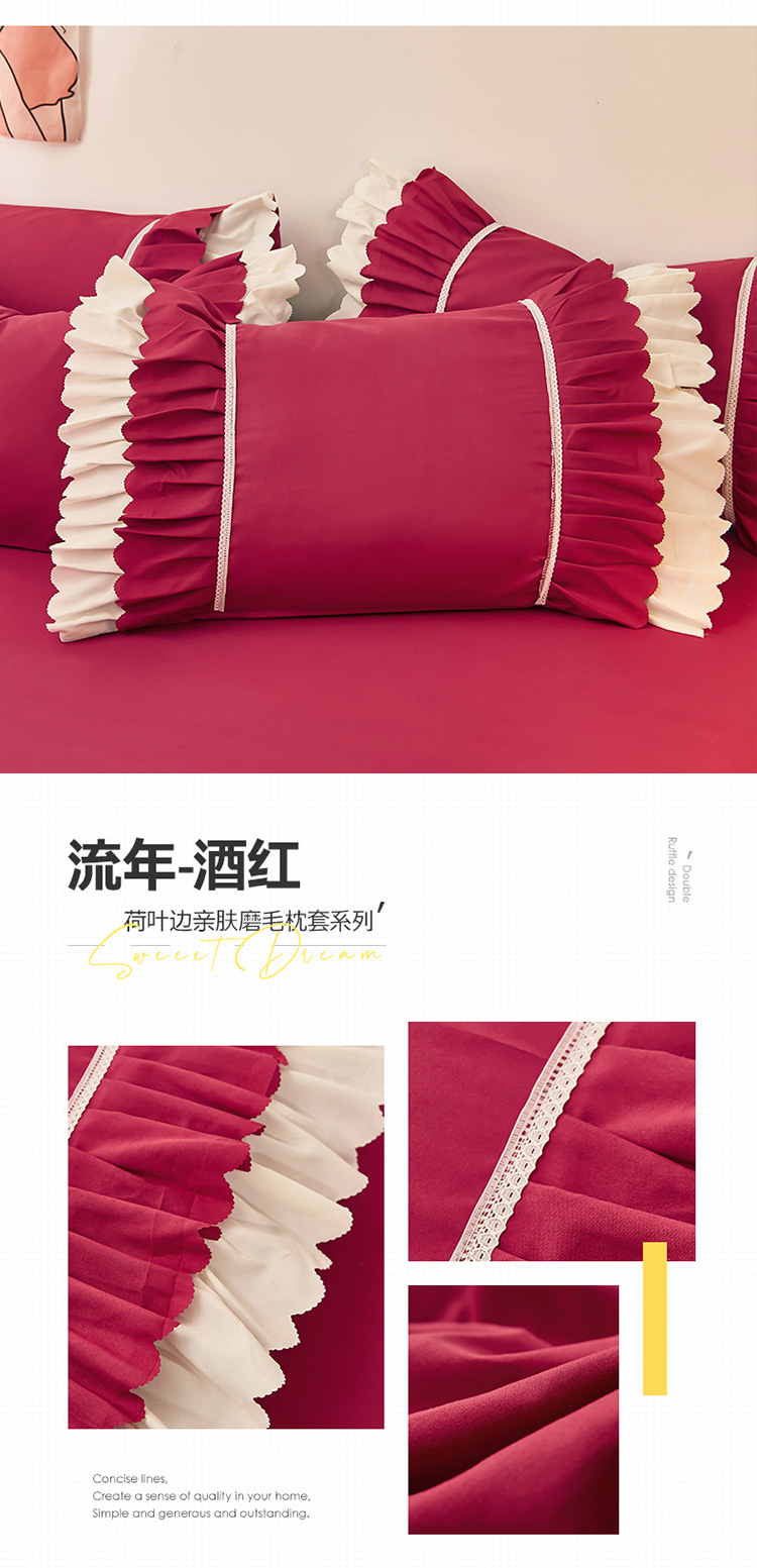 商品名称:(总)莉莉安 2025新款荷叶边亲肤磨毛单枕套-流年系列