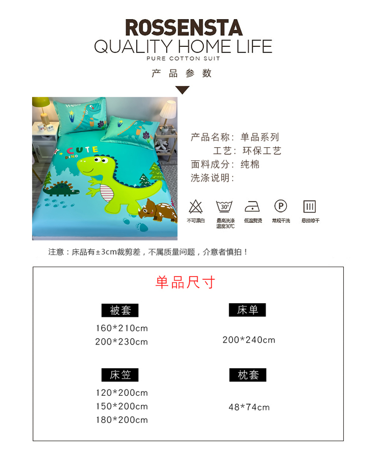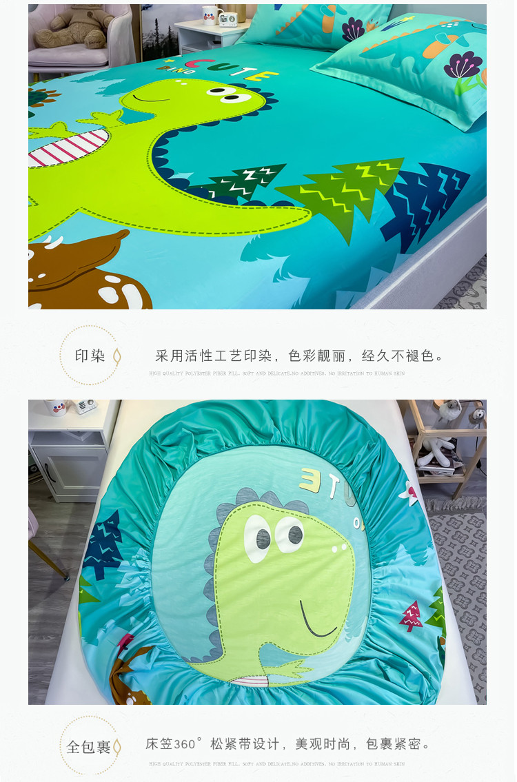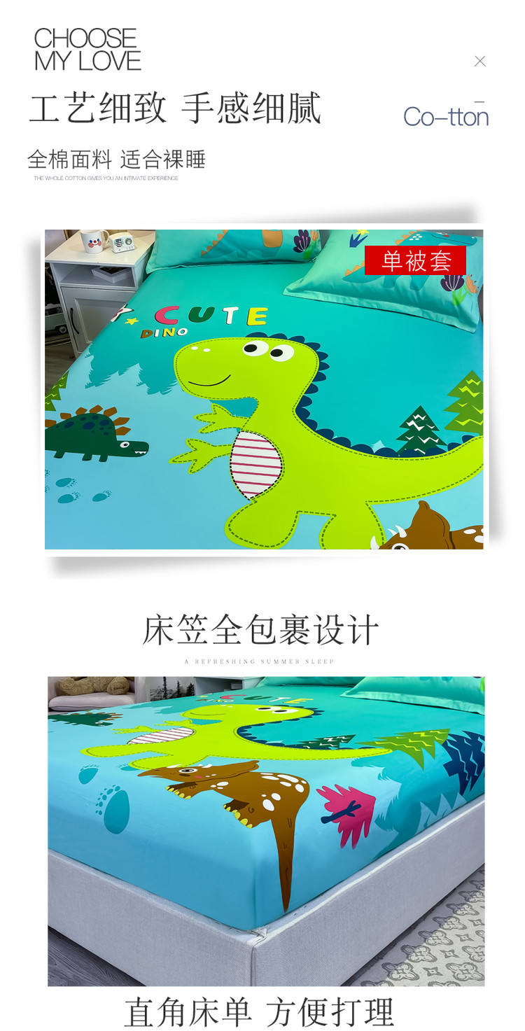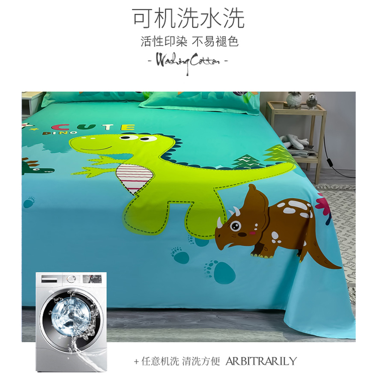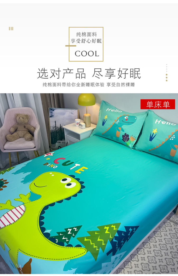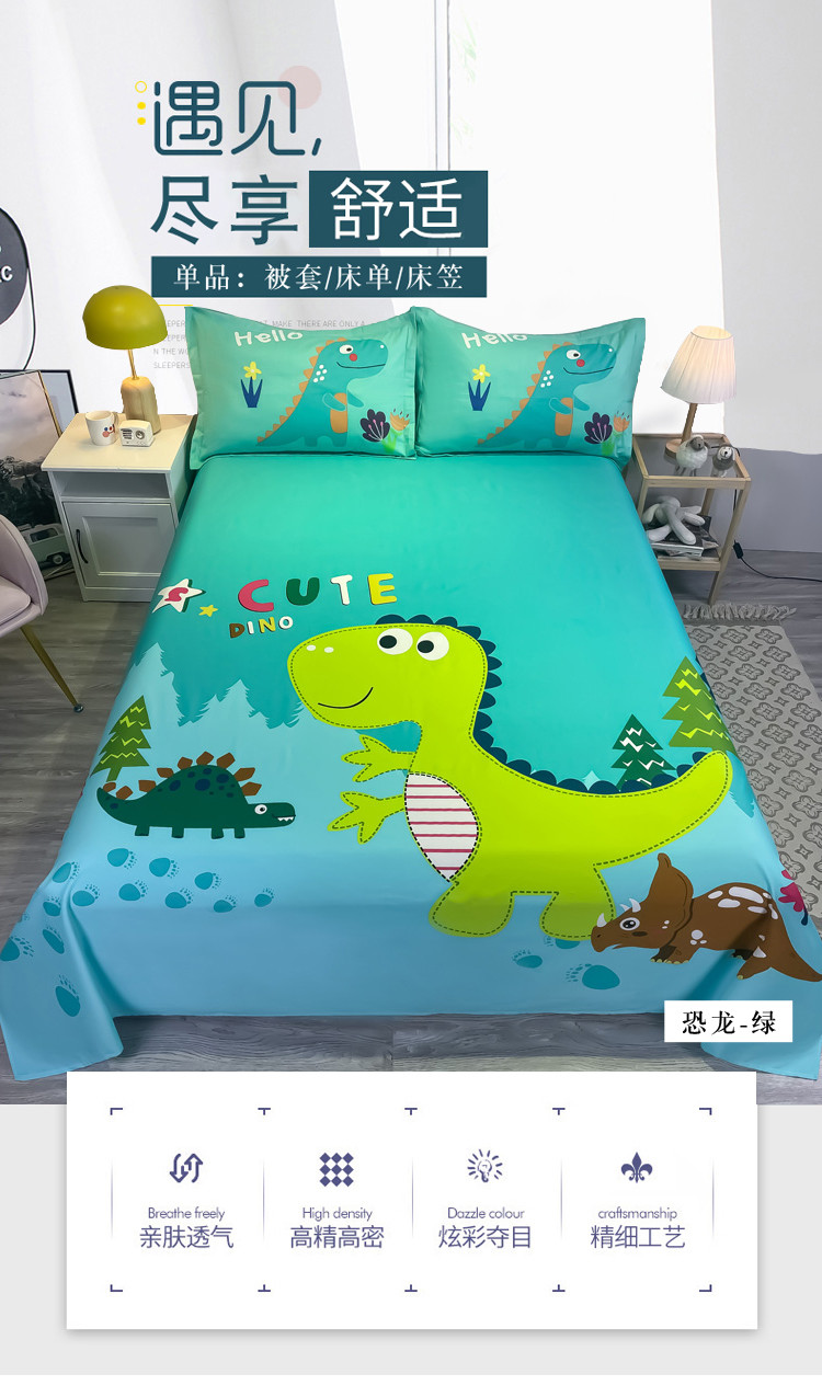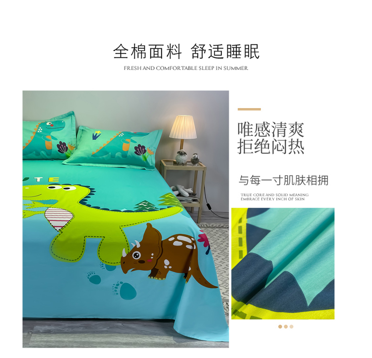商品名称:金爱家 2021新款全棉大版单品床单 恐龙-绿
