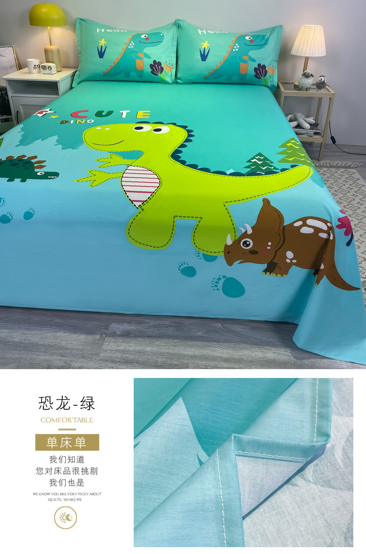 金爱家 2021新款全棉大版单品床单 恐龙-绿
