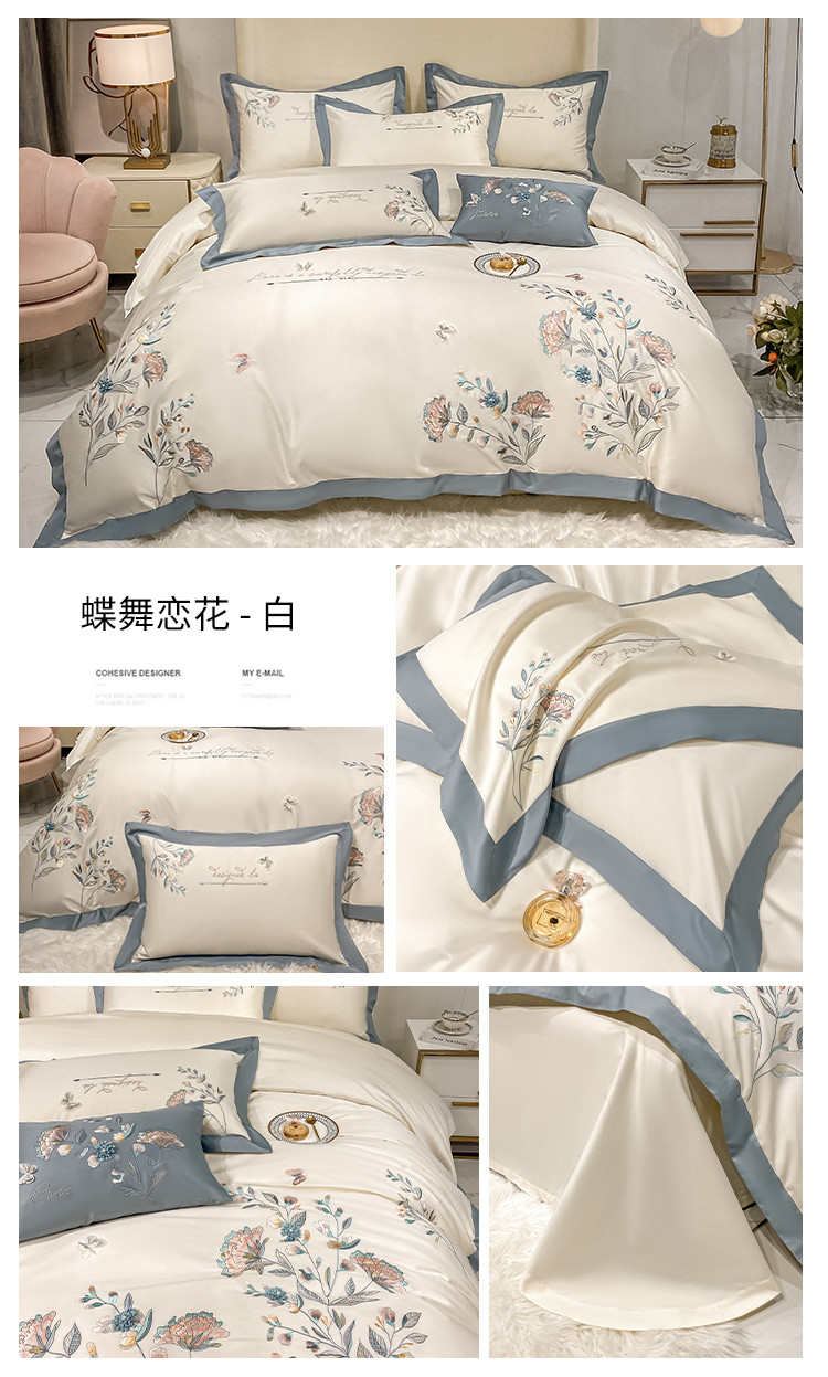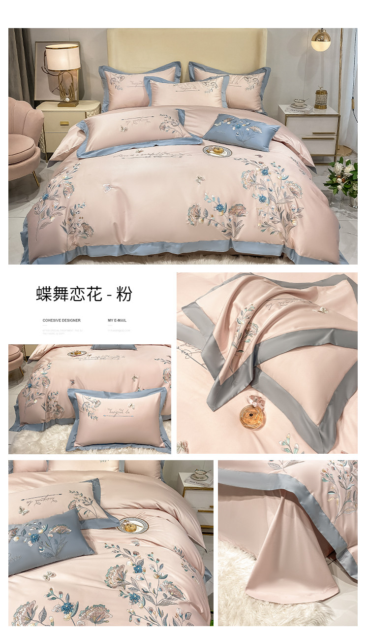 (总)品家居2021新款贝拉花园180支全棉澳棉刺绣四件套,贝拉花园-粉,贝拉花园-蓝