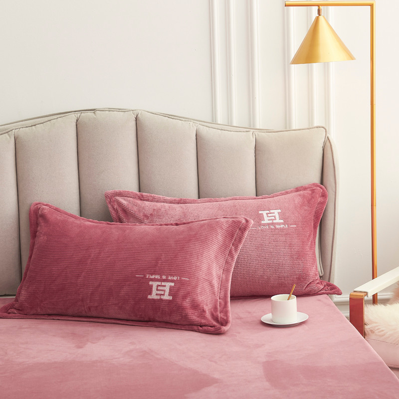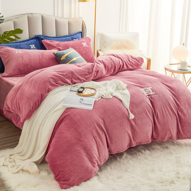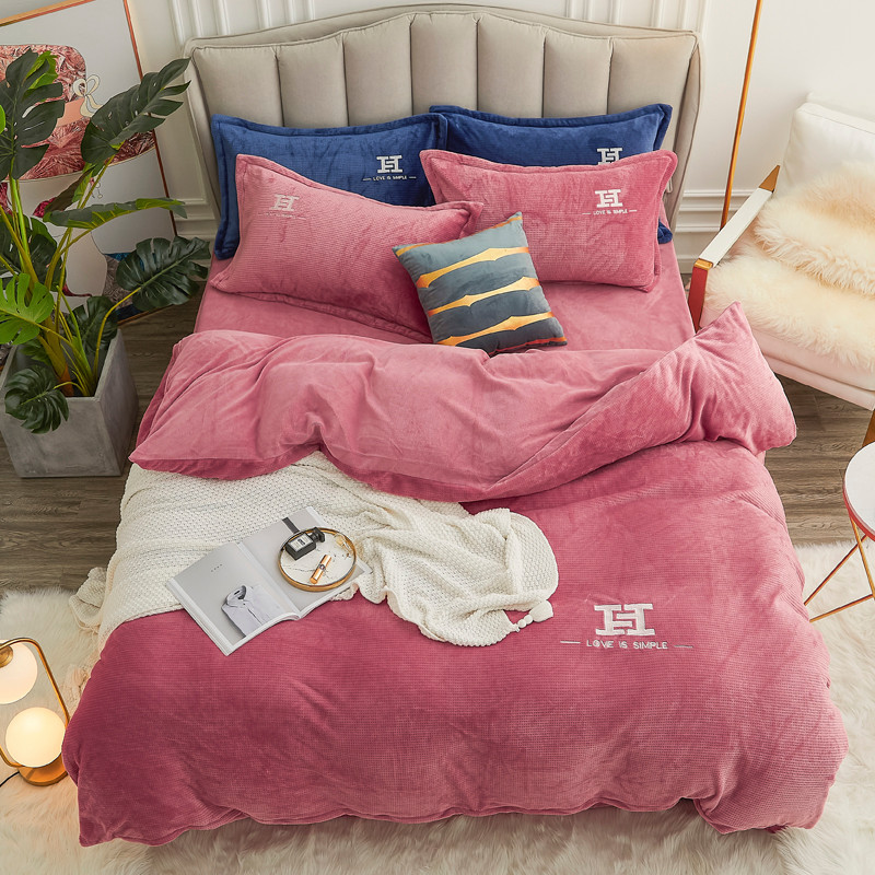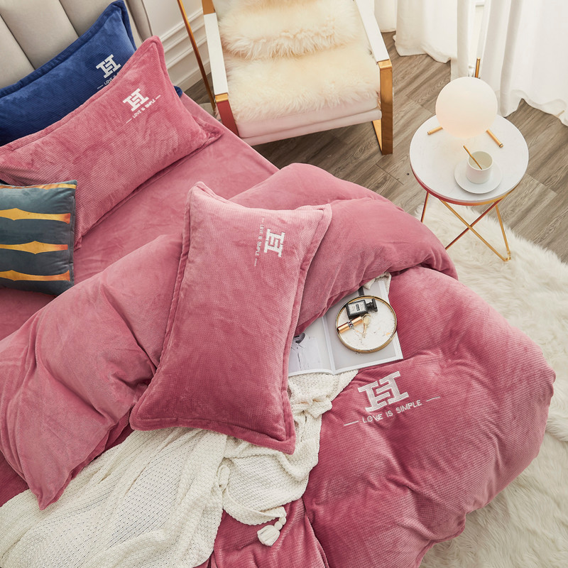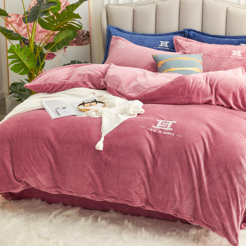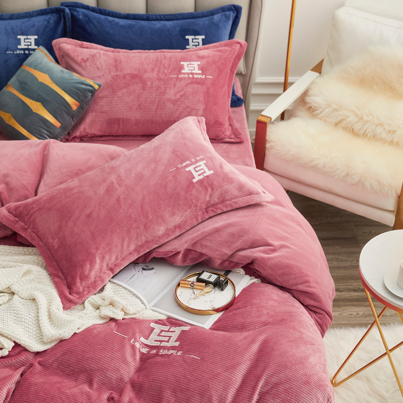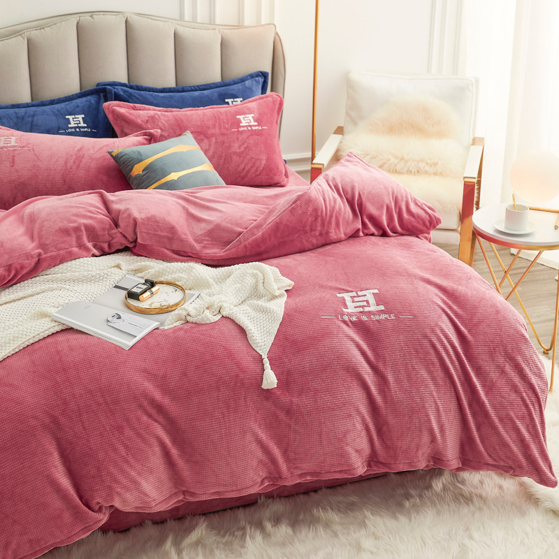 商品名称:锦罗绣 2021新款牛奶绒绣花四件套 love粉