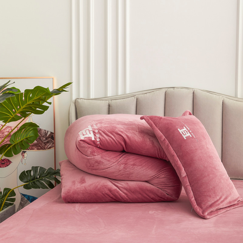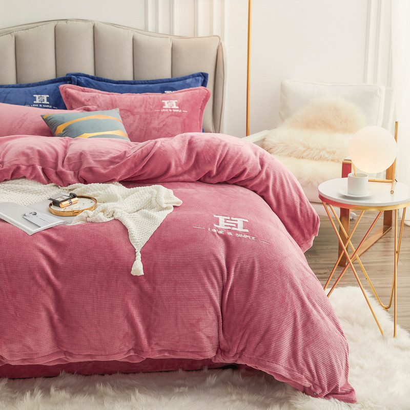 锦罗绣 2021新款牛奶绒绣花四件套 love粉