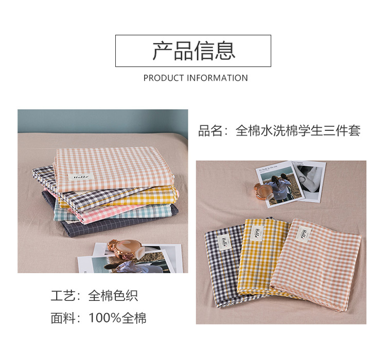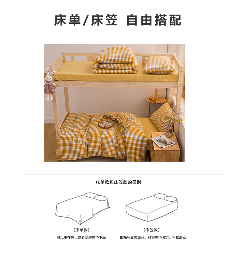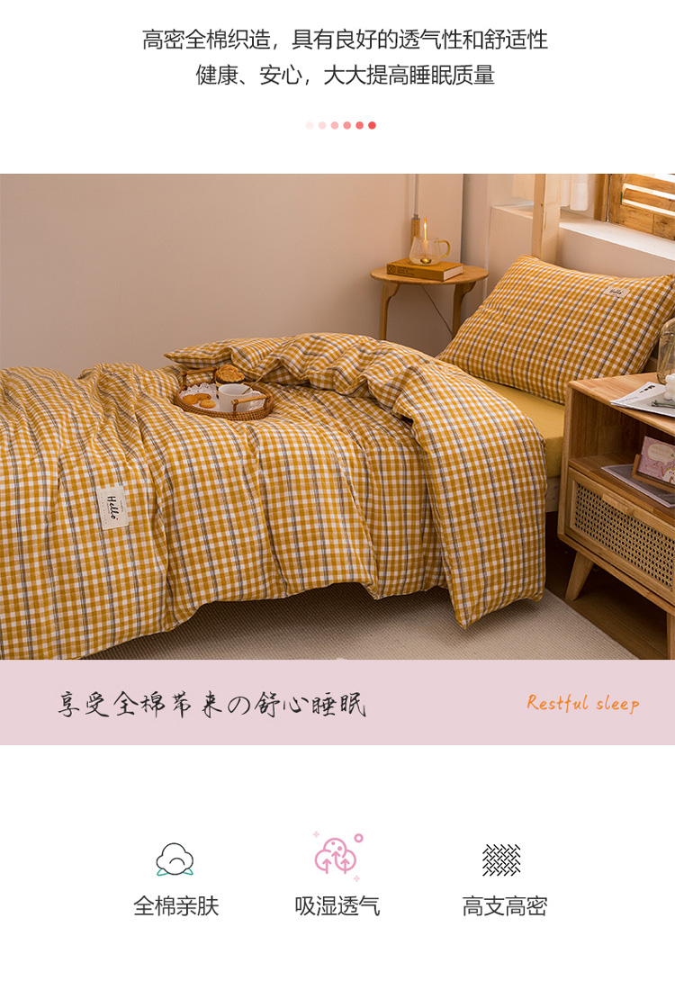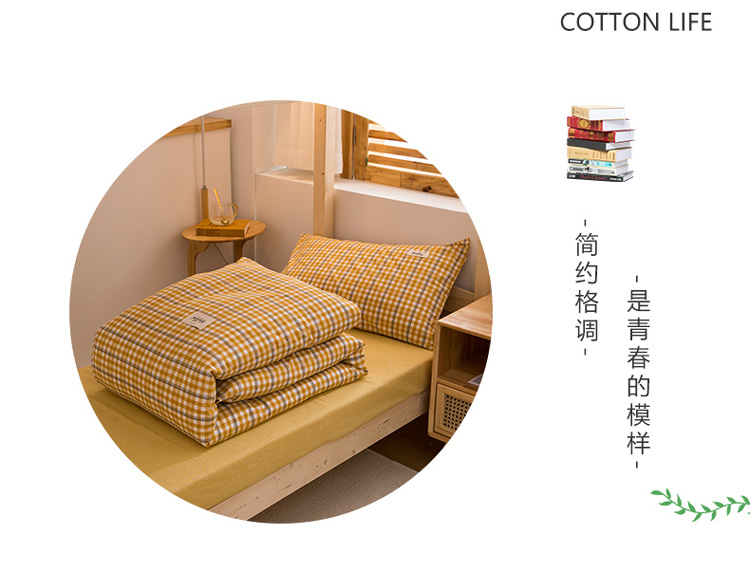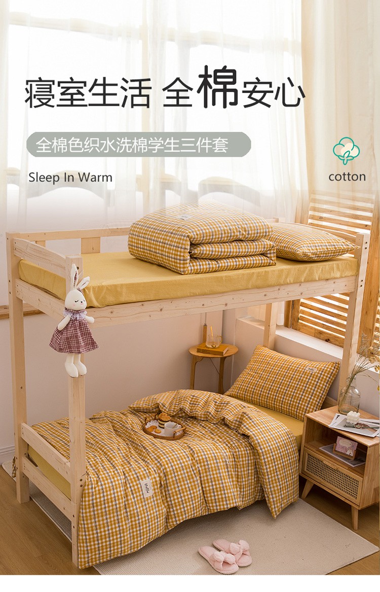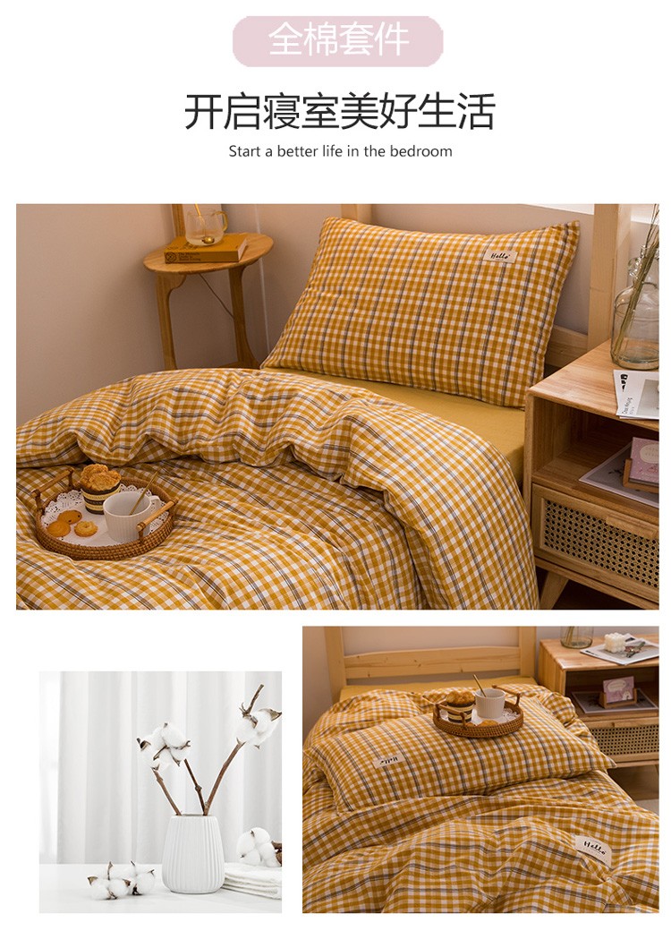 当前位置: 91家纺网 > 商品网购 > 床品套件 > 三件套 > 柠萌家居 2021新款全棉色织水洗棉学生宿舍三件套 姜黄小格