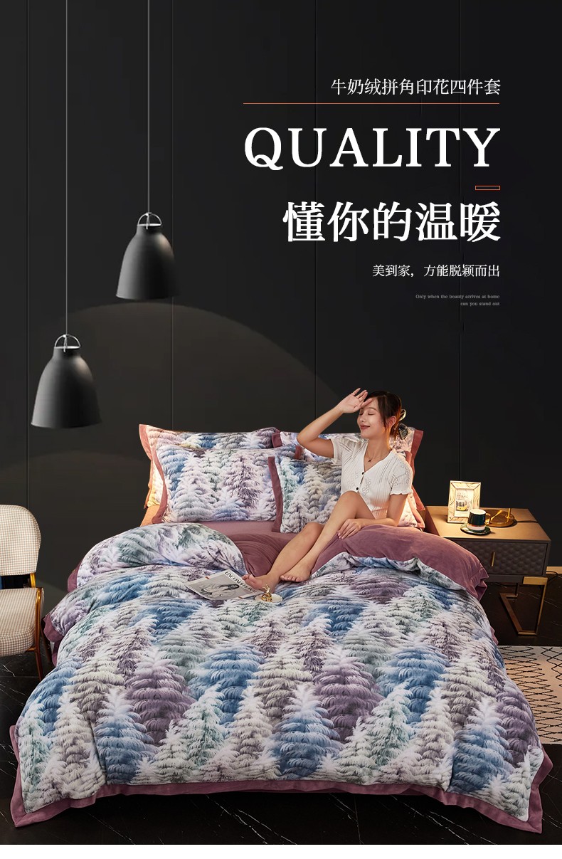 商品名称:澳洲羽 2024年新牛奶绒拼角印花四件套水晶法莱绒直播供货 普罗旺斯