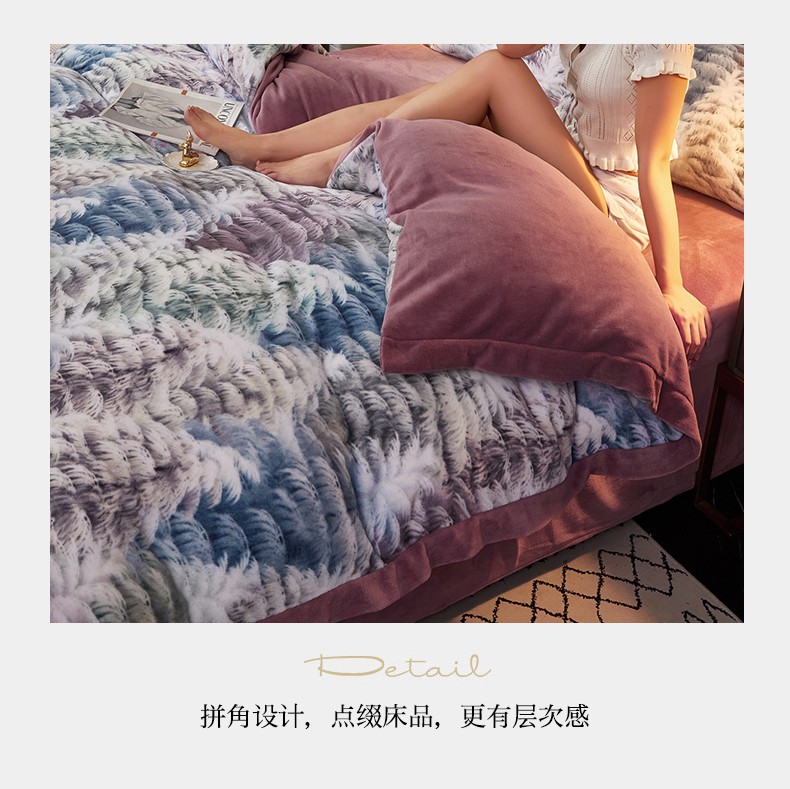 澳洲羽 2024年新牛奶绒拼角印花四件套水晶法莱绒直播供货 普罗旺斯