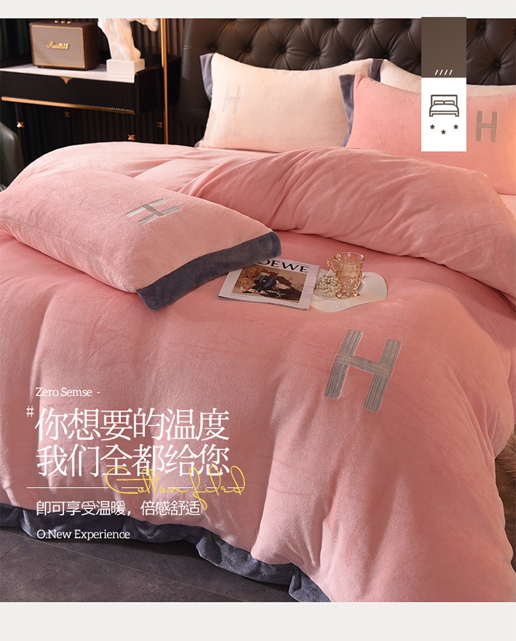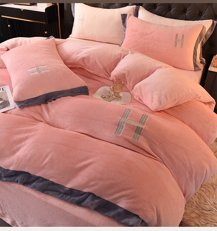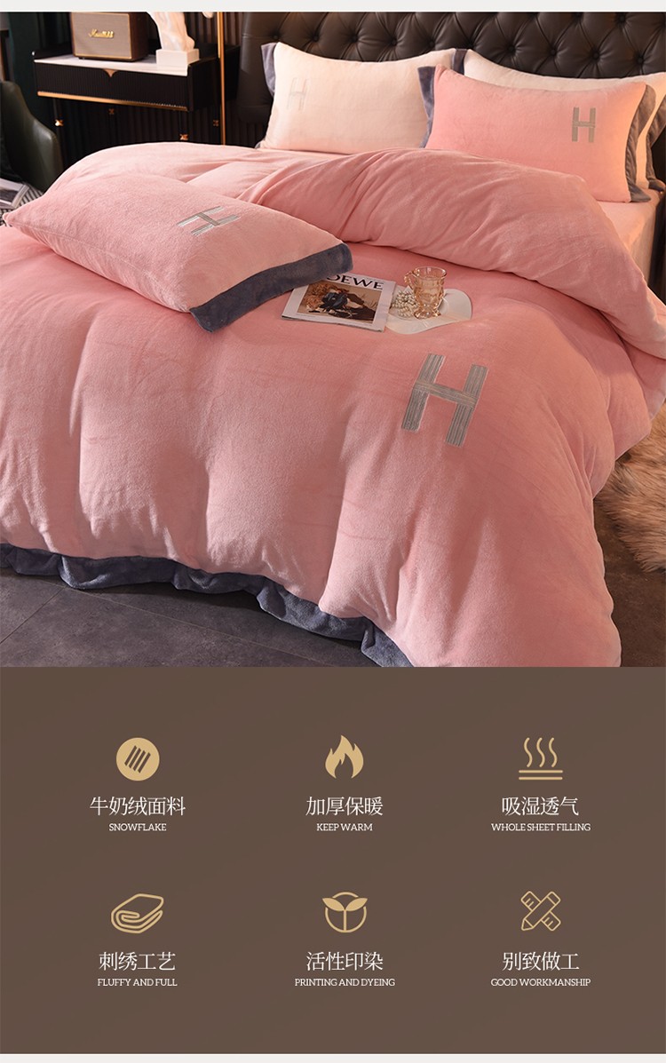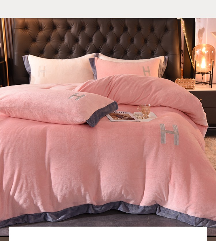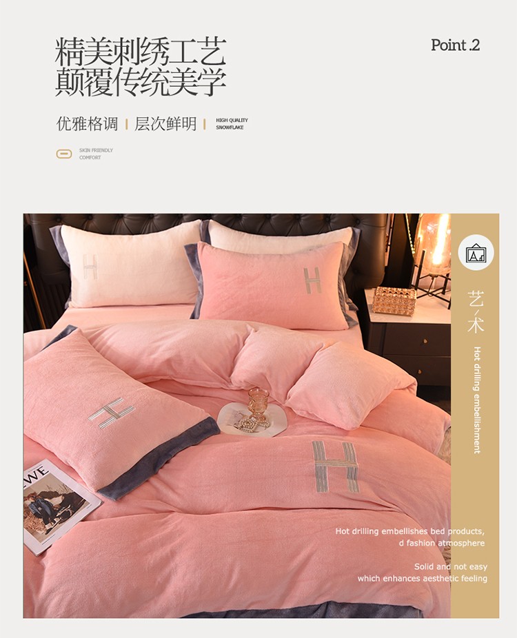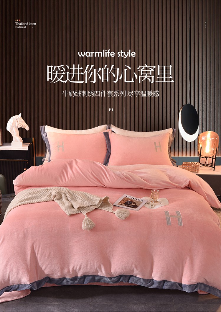 商品名称:艾米家居 2021新款牛奶绒刺绣H款四件套 玉色