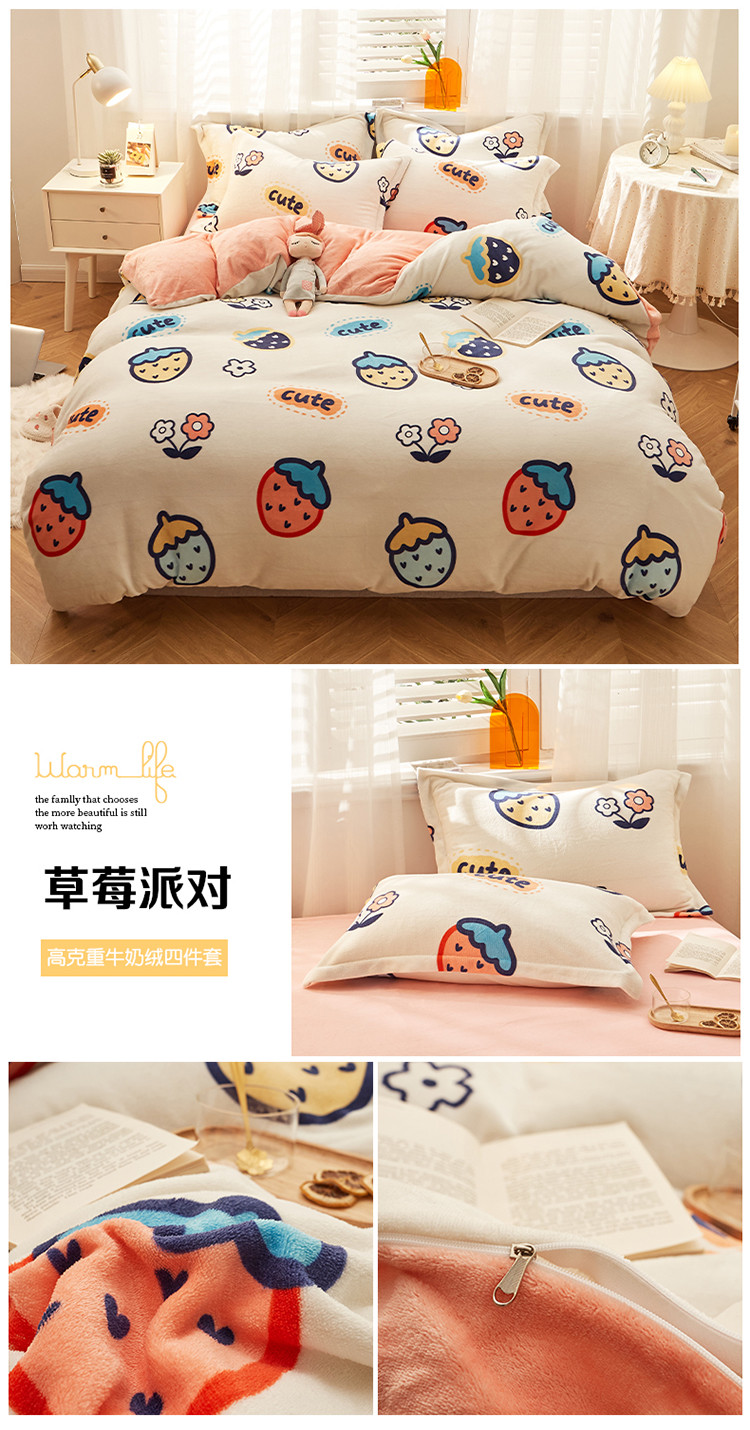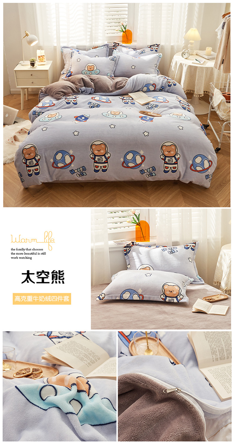 (总)佰亿莱 2024新款高克重牛奶绒印花四件套