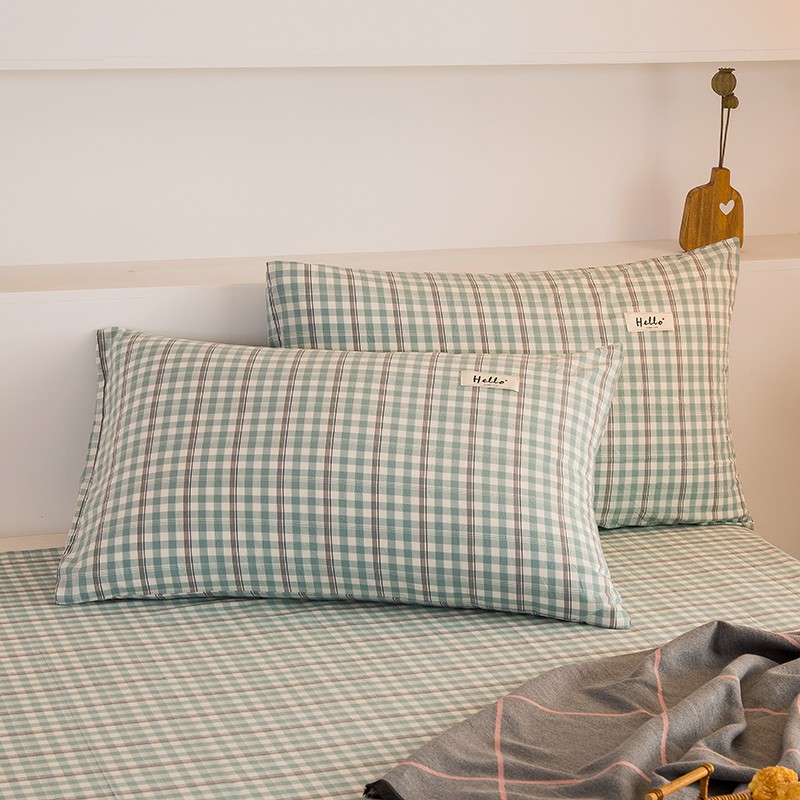 商品名称:柠萌2021新款全棉色织水洗棉枕套 海蓝小格(一对)