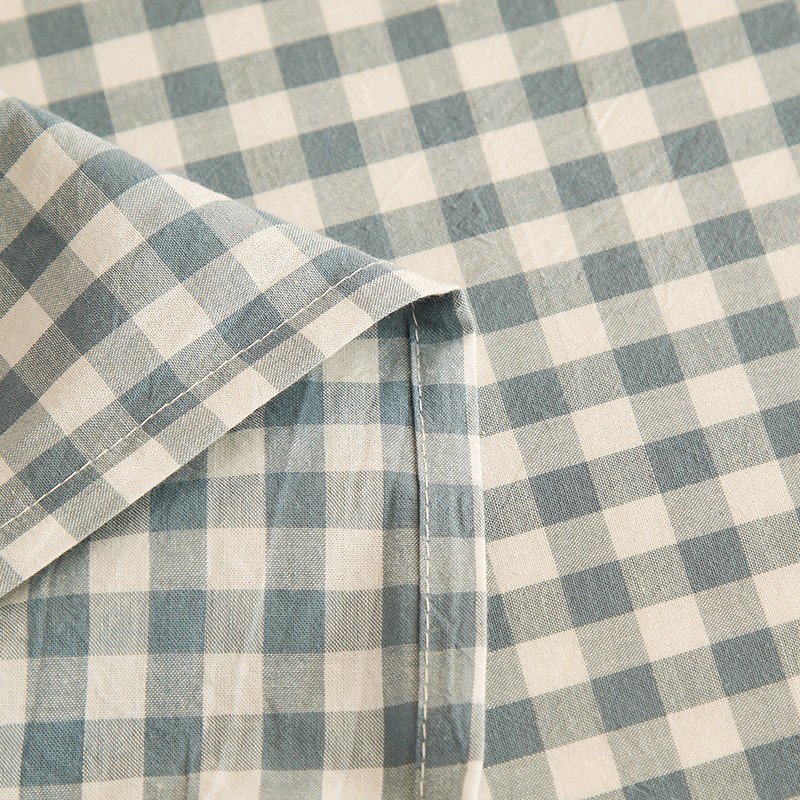 商品名称:柠萌2021新款全棉色织水洗棉枕套 浅蓝小格(一对)