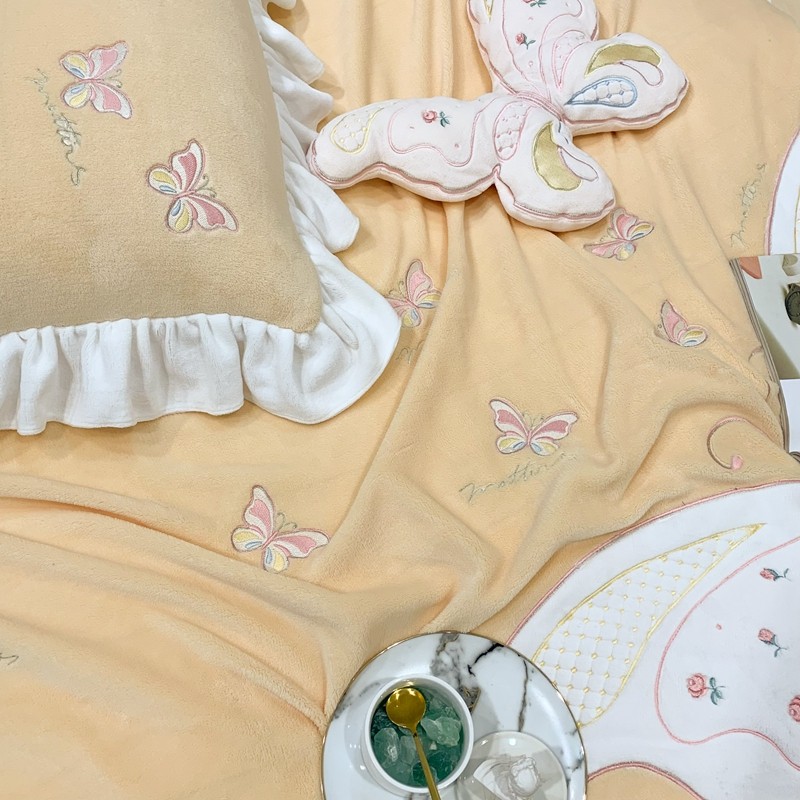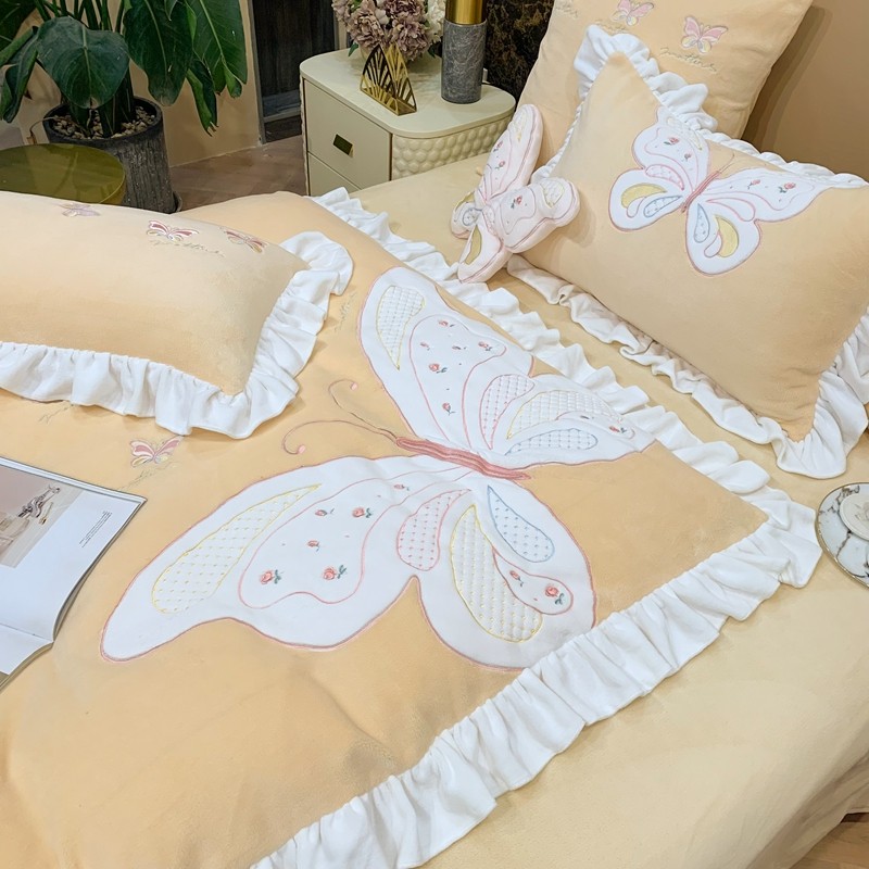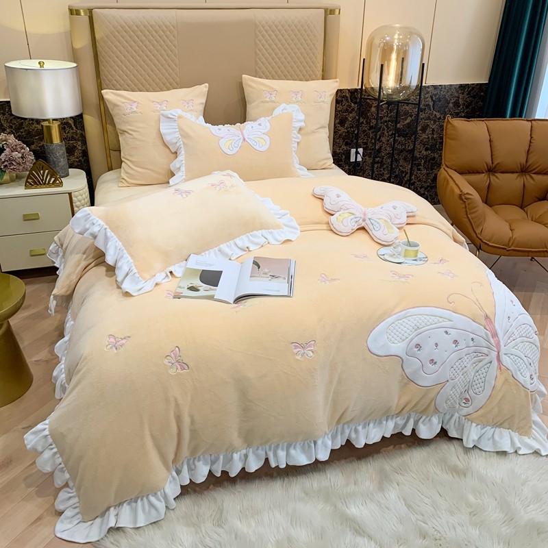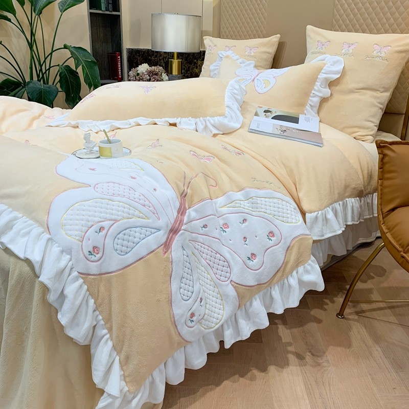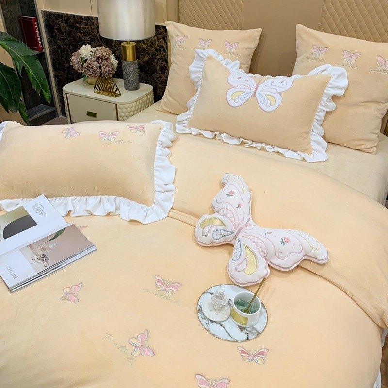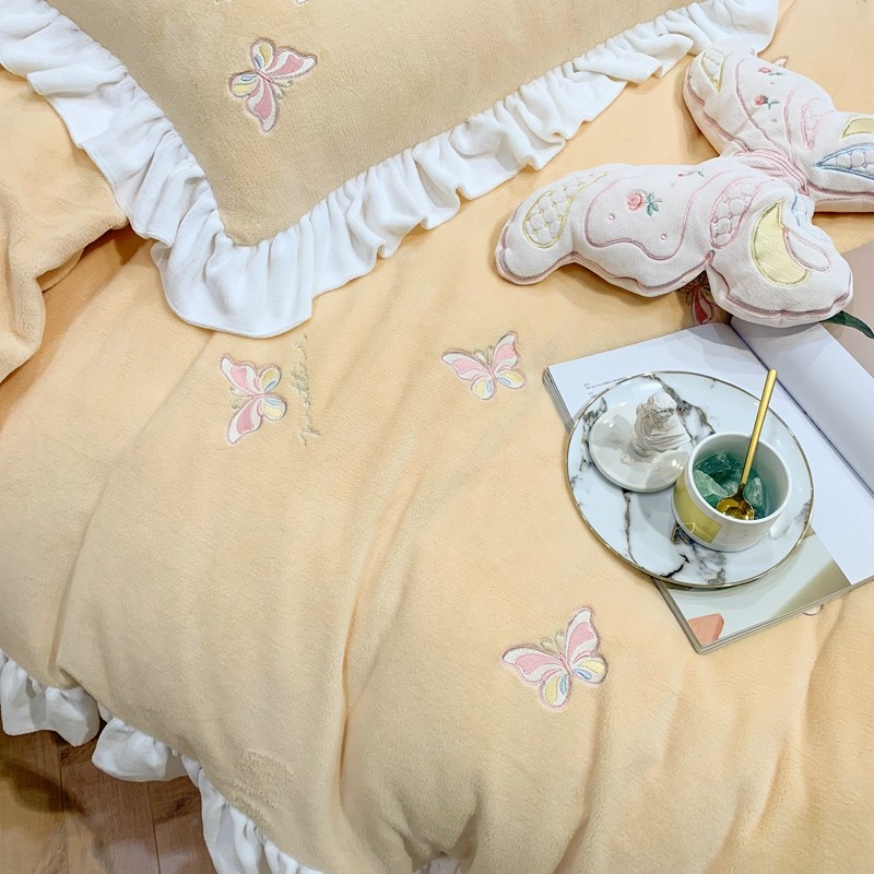 星尚 2021新款A类进口牛奶绒加厚水晶绒绣花四件套 翩翩起舞-鹅黄