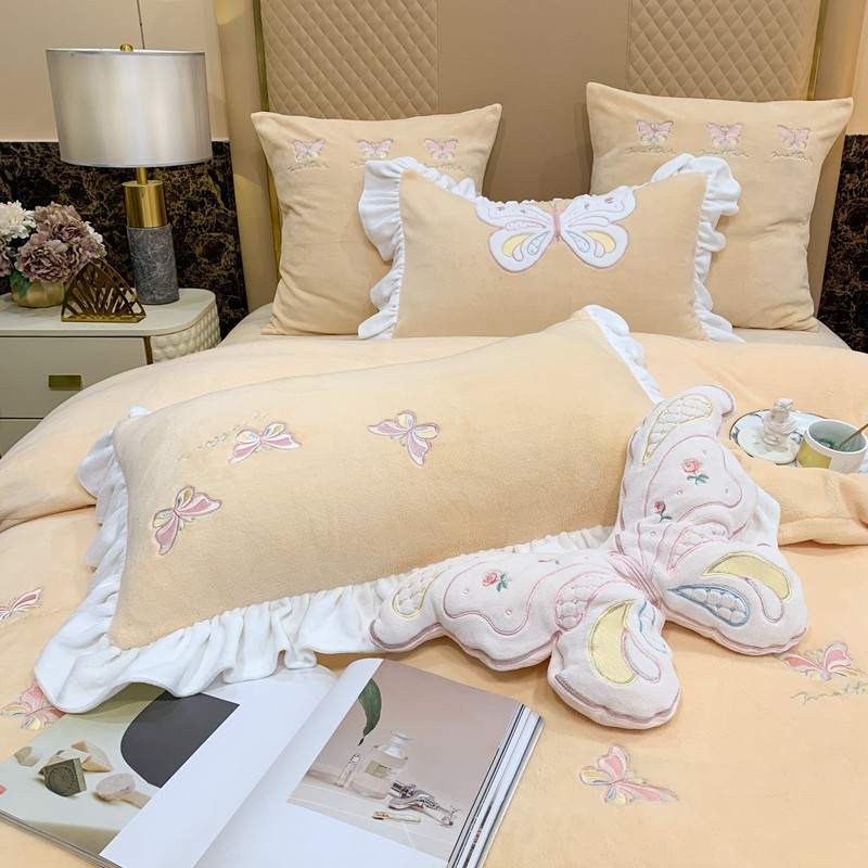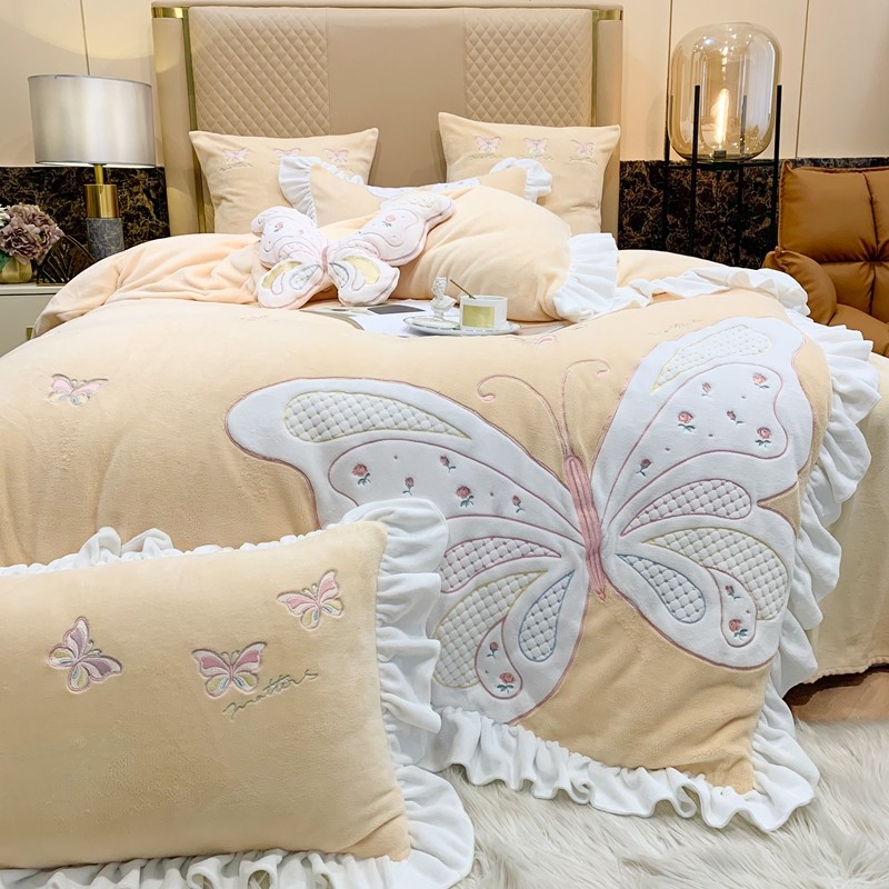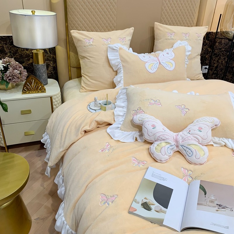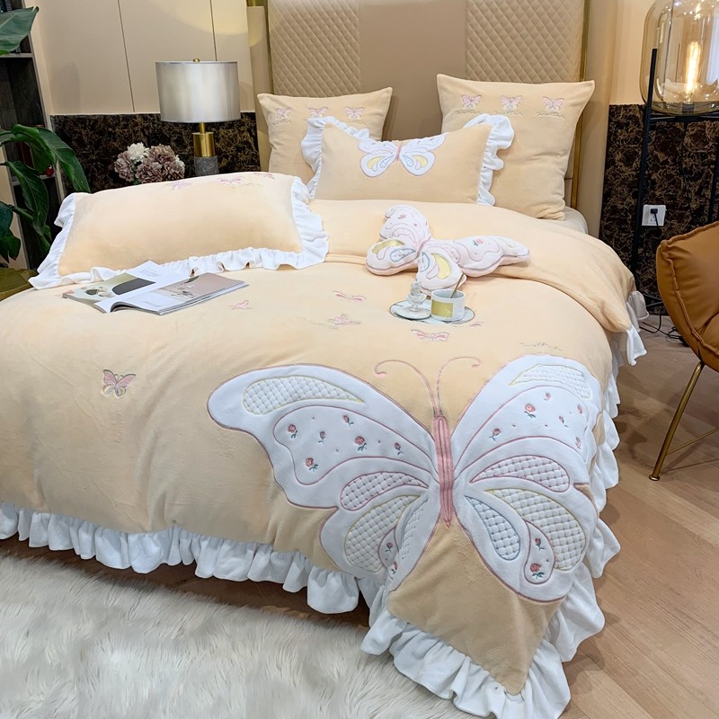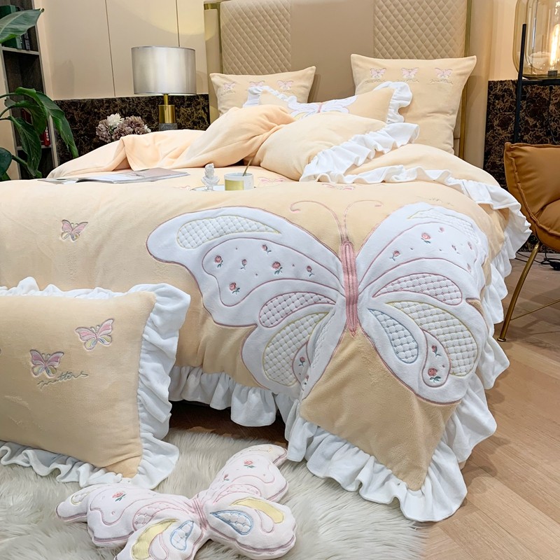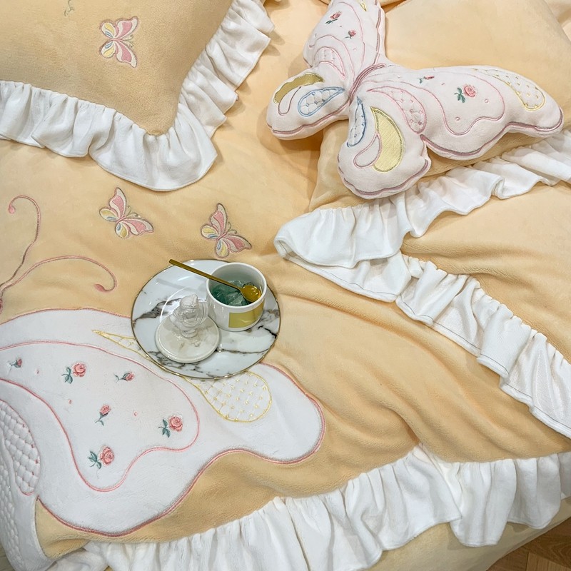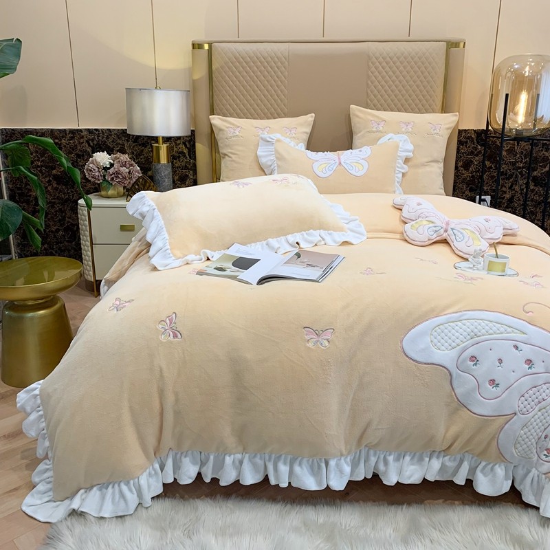 星尚 2021新款A类进口牛奶绒加厚水晶绒绣花四件套 翩翩起舞-鹅黄