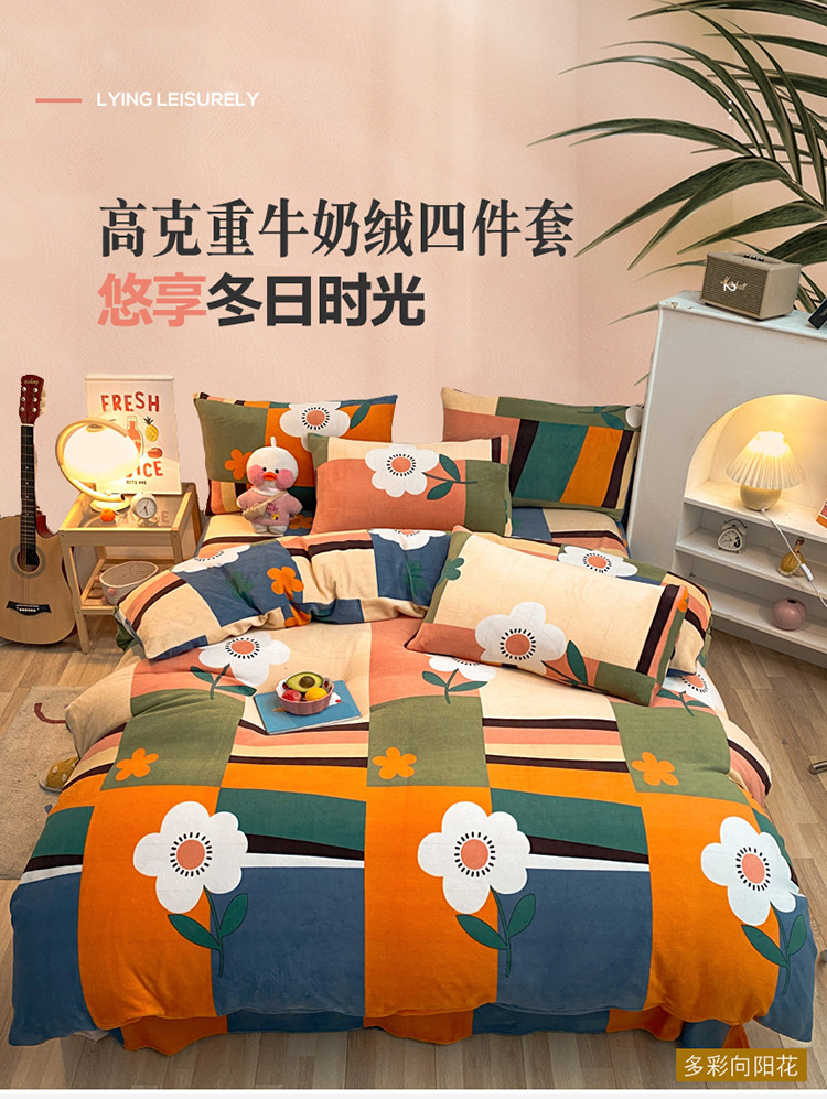 商品名称:金爱家 2021新款跑量款牛奶绒四件套 多彩向阳花