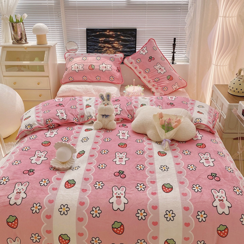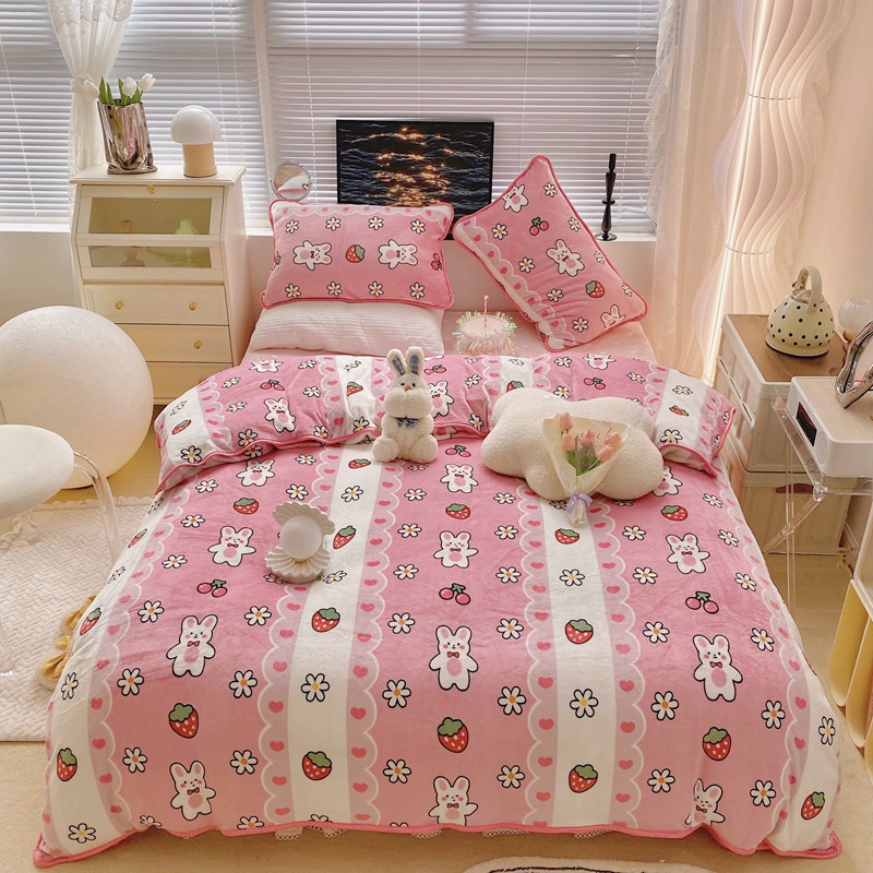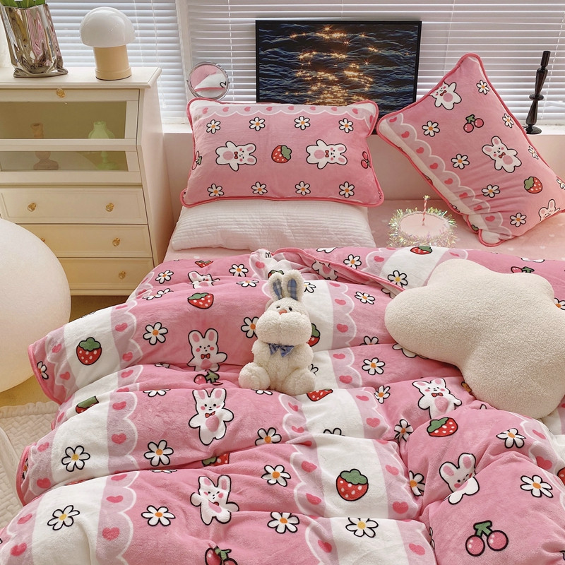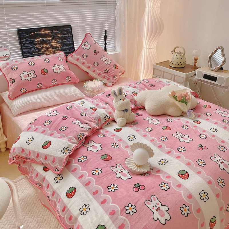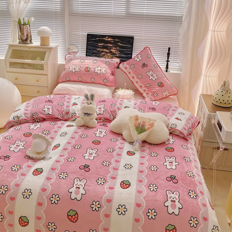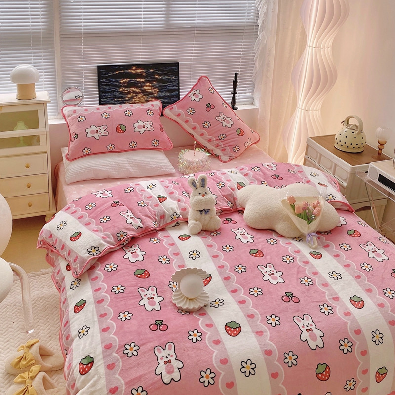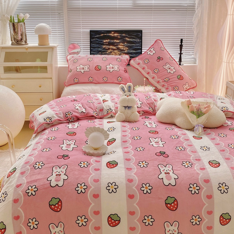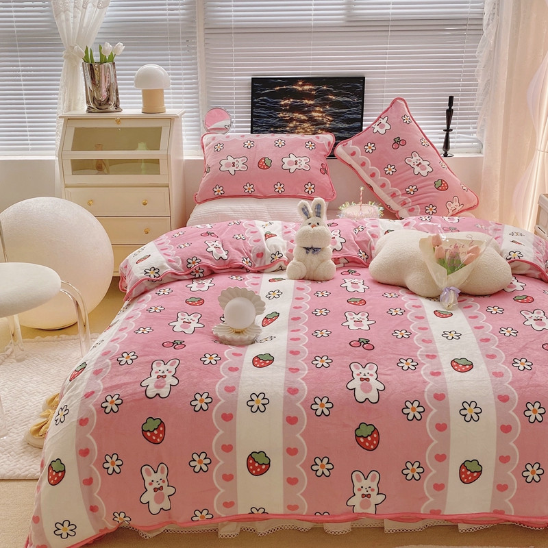 顾里2021新款ins韩国高端保暖牛奶绒四件套 蕾丝兔兔