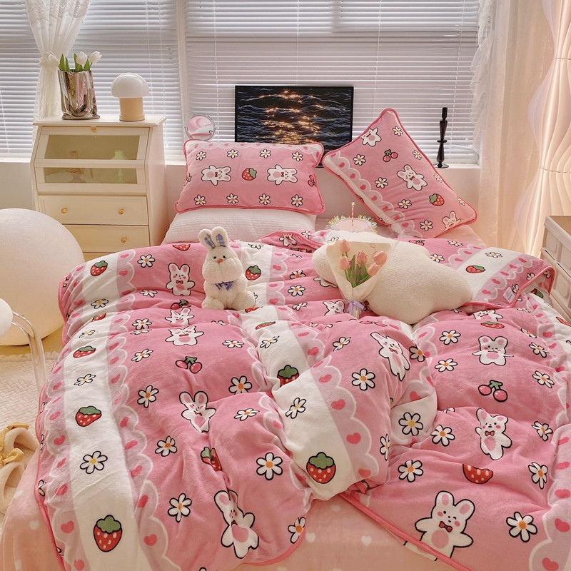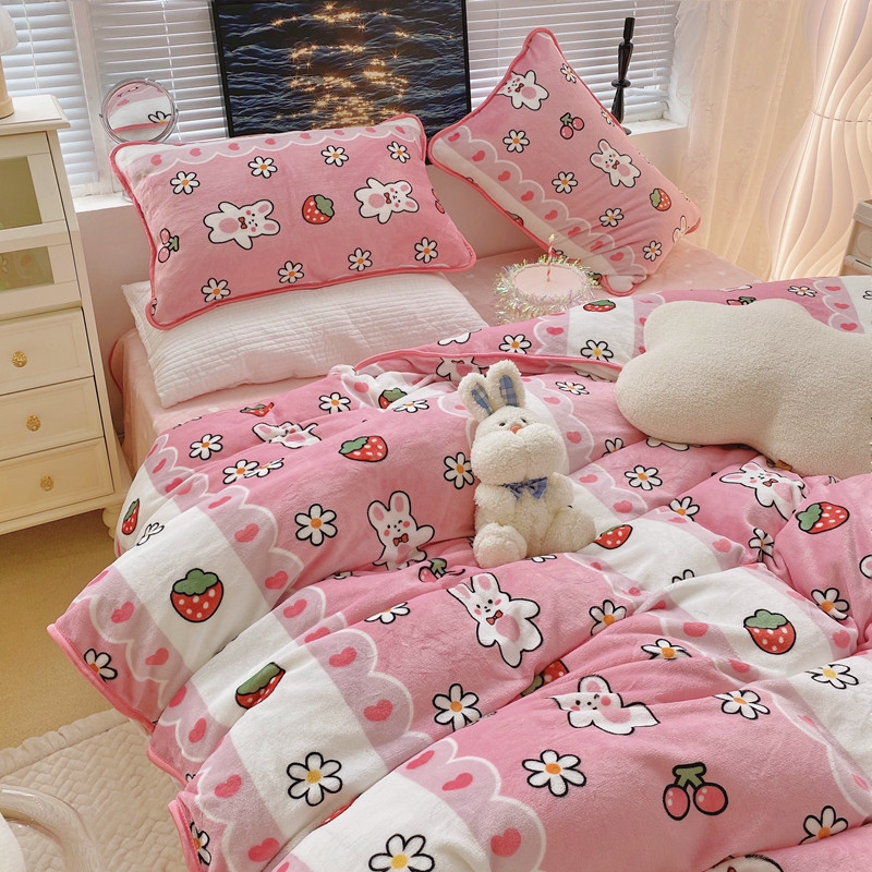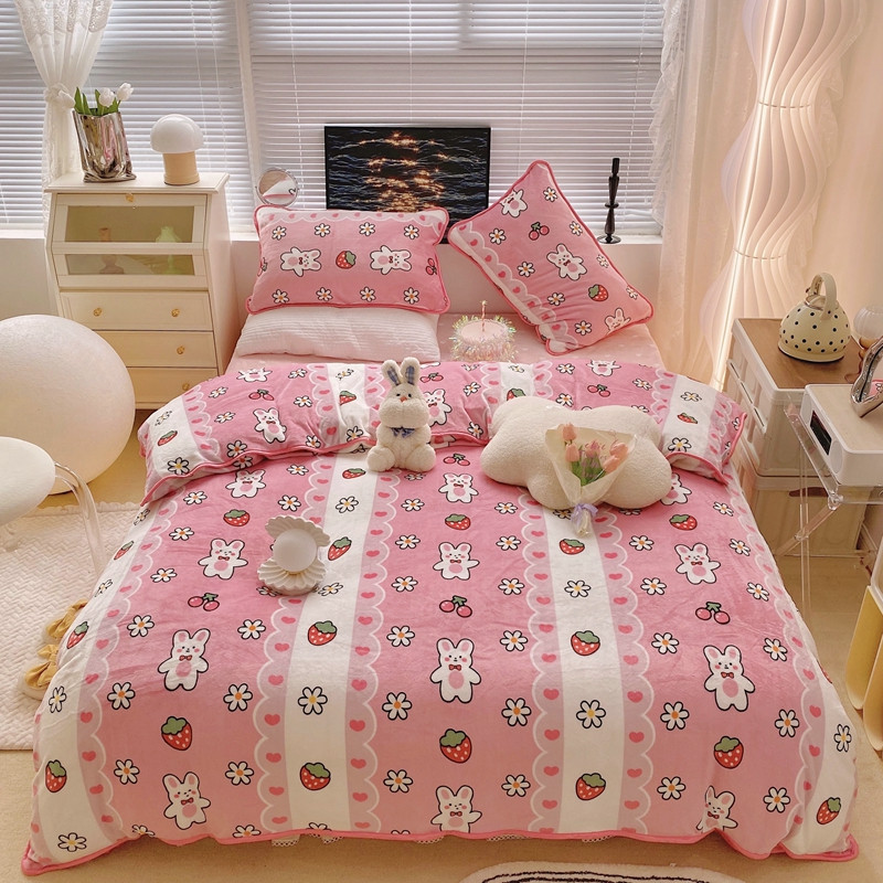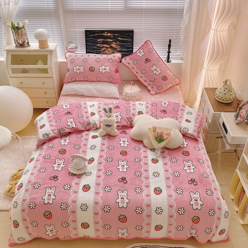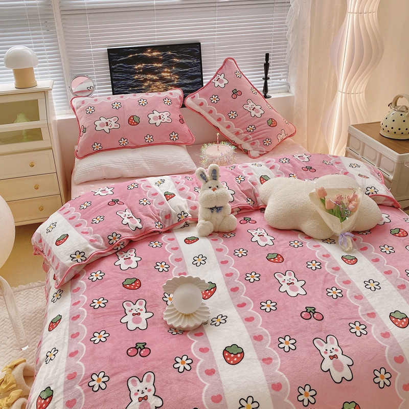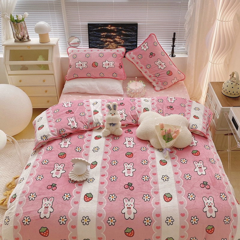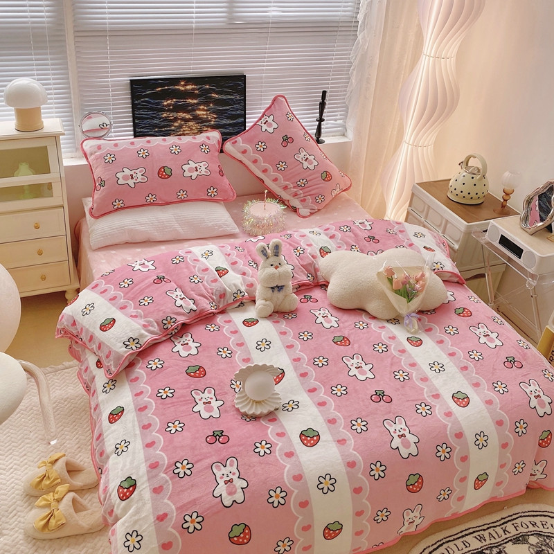 顾里2021新款ins韩国高端保暖牛奶绒四件套 蕾丝兔兔