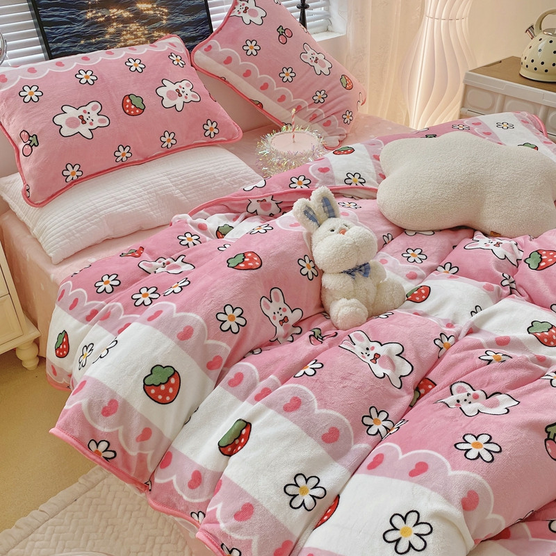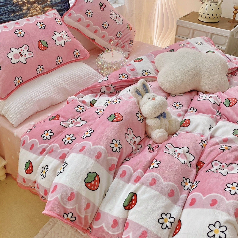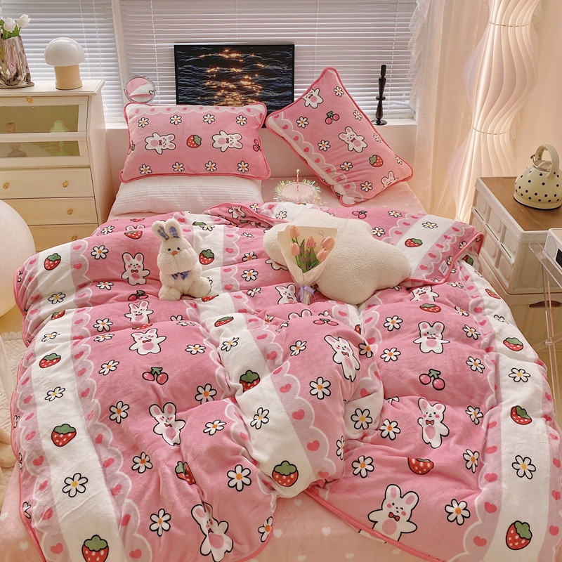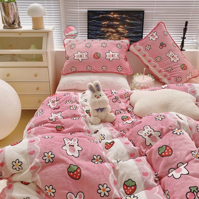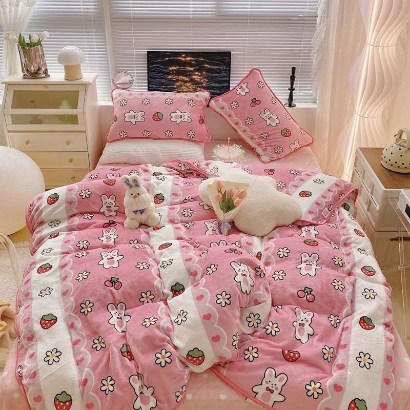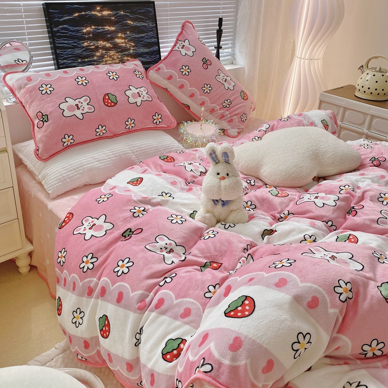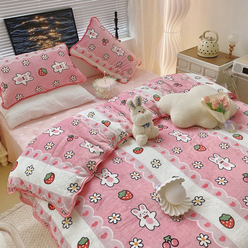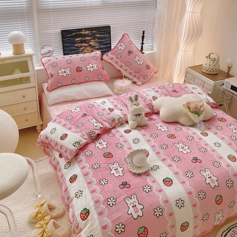 顾里2021新款ins韩国高端保暖牛奶绒四件套 蕾丝兔兔
